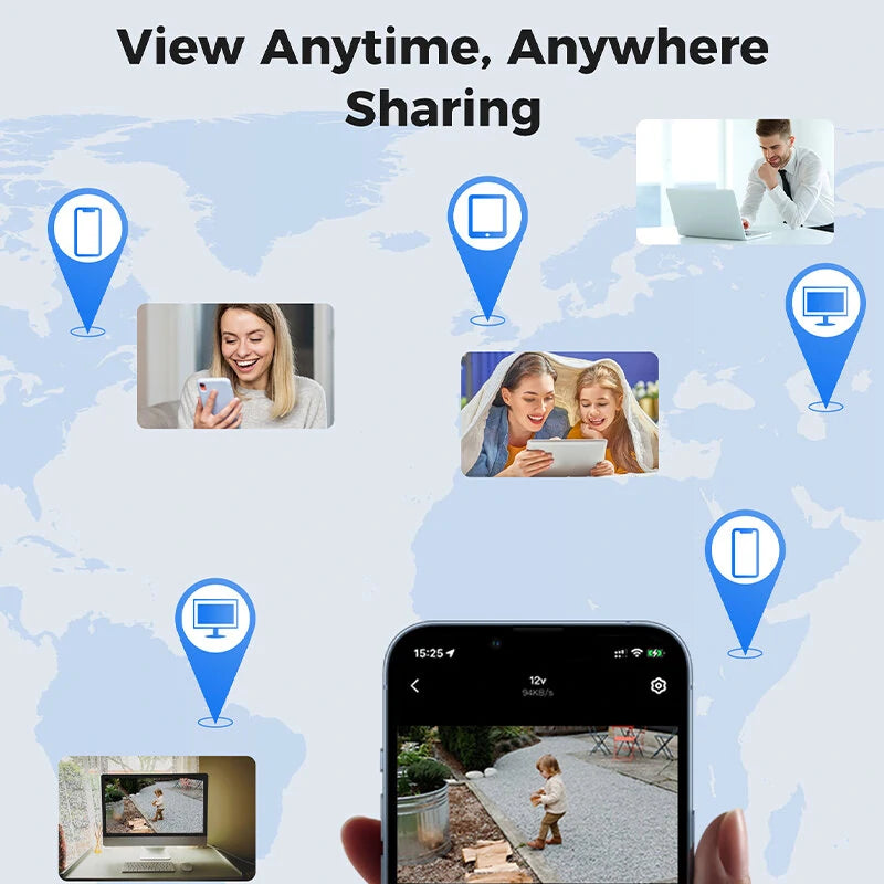 4. View Live Remotely & No Subscription Fees: Using the 'Eseecloud' app, you can effortlessly access the live video feed from the camera on your phone, regardless of your location. Furthermore,your family members view the camera by the 'share' button. For storage purposes, the camera supports a 256GB micro sd card (not included) to store recorded videos. No additional fees to access your stored footage. Additionally, it is compatible with a connected Hiseeu camera system, no need Micro SD card.