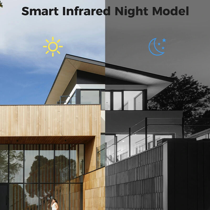 1. 5MP HD View & HD Night Vision: Experience the crystal-clear 5MP (2560*1920) resolution with the 3.6mm fixed lens wireless security camera. Capture every minute detail and never miss any moment. The camera's two infrared lights offer clear images in darkness, reaching up to 60ft. Rest assured, knowing that your family and property are protected 24/7.