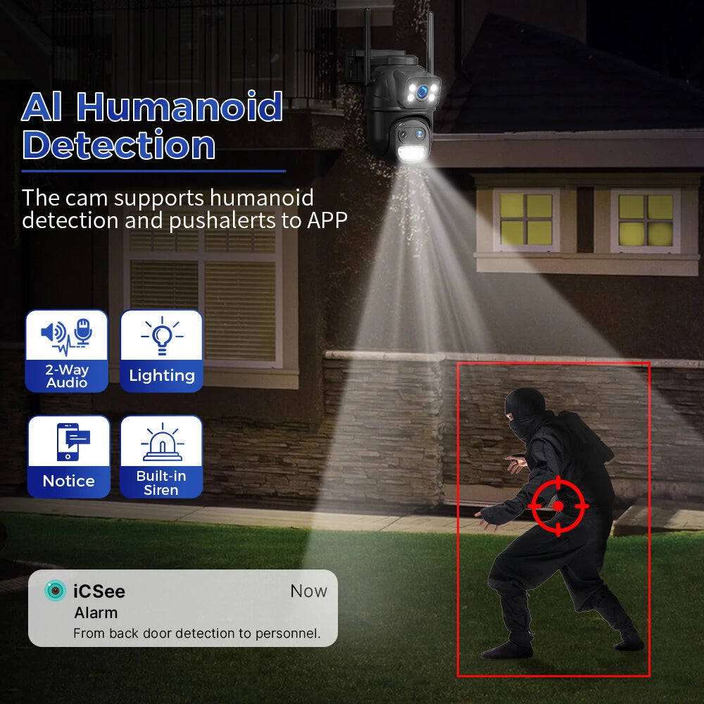 Utilizing AI technology, the camera can effectively detect human movement and trigger alarms. This feature reduces false alarms caused by non-human activities, making your security system more reliable and efficient.