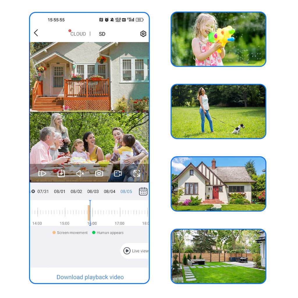 3. Smart App Control: Seamlessly control and monitor the camera through the Eseecloud app from anywhere, receive real-time motion alerts, and customize settings.
