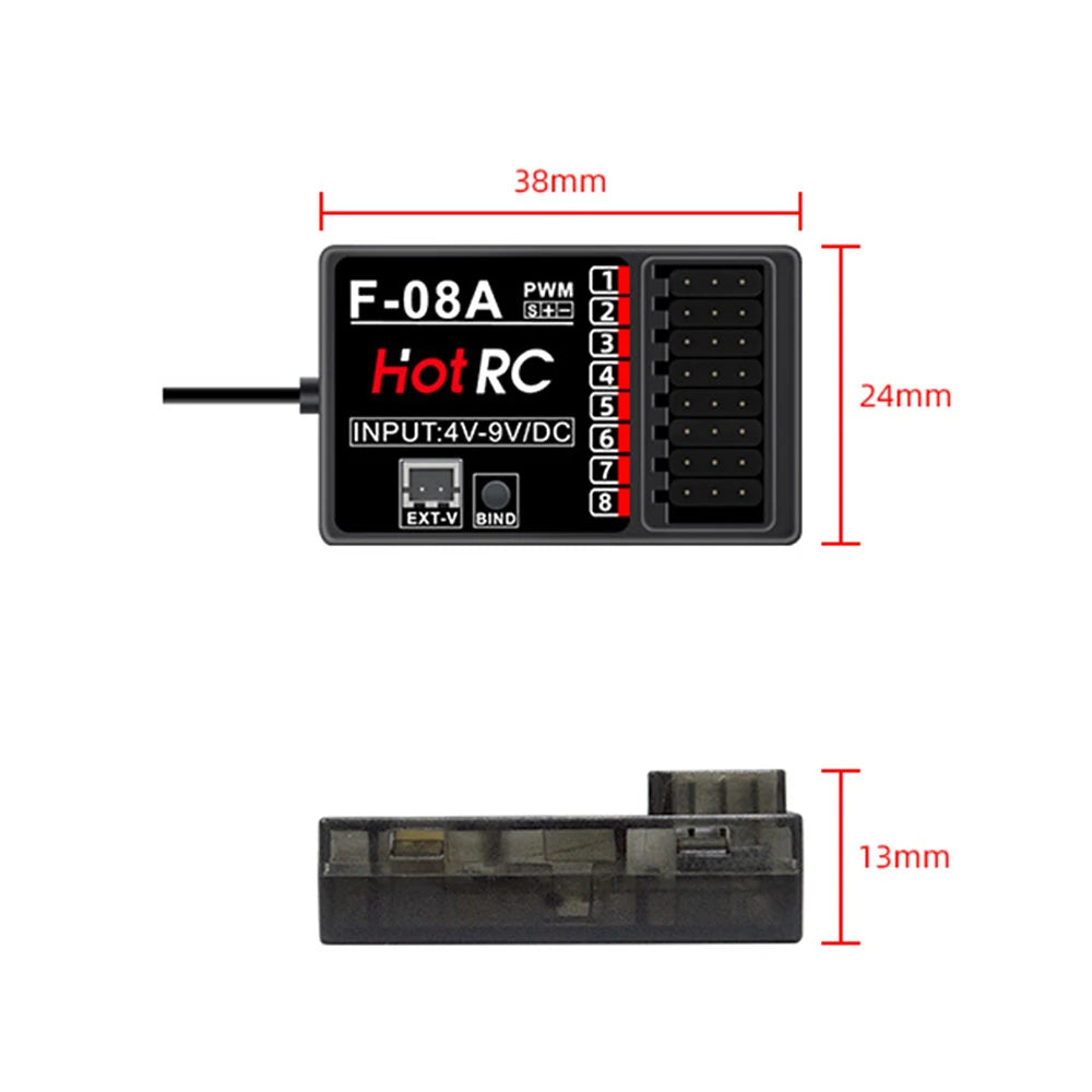HOTRC F-08A 2.4GHz 8CH PWM Receiver for DS800 HT-8A CT-8B Radio Transmitter RC Car Boat Tank Vehicle Models