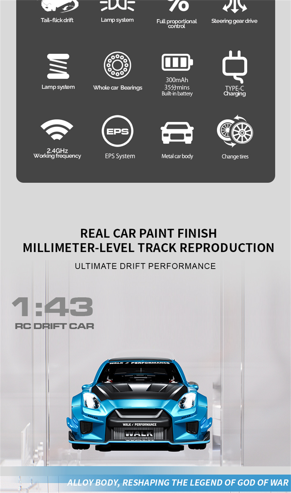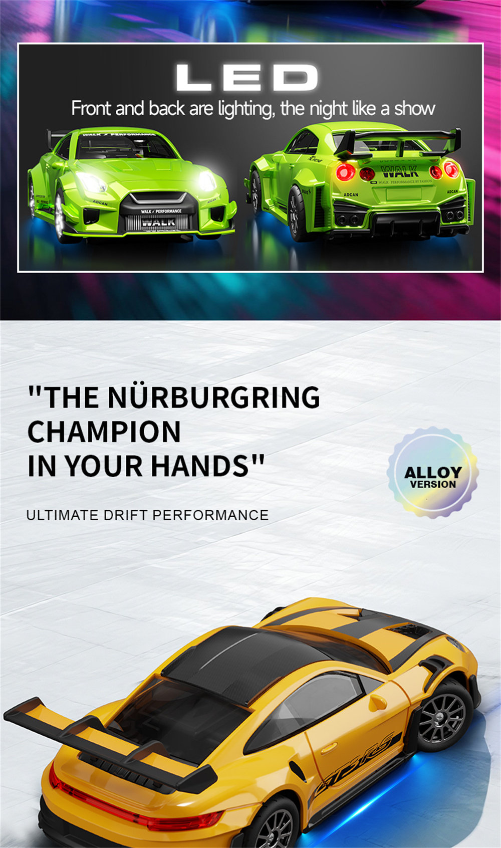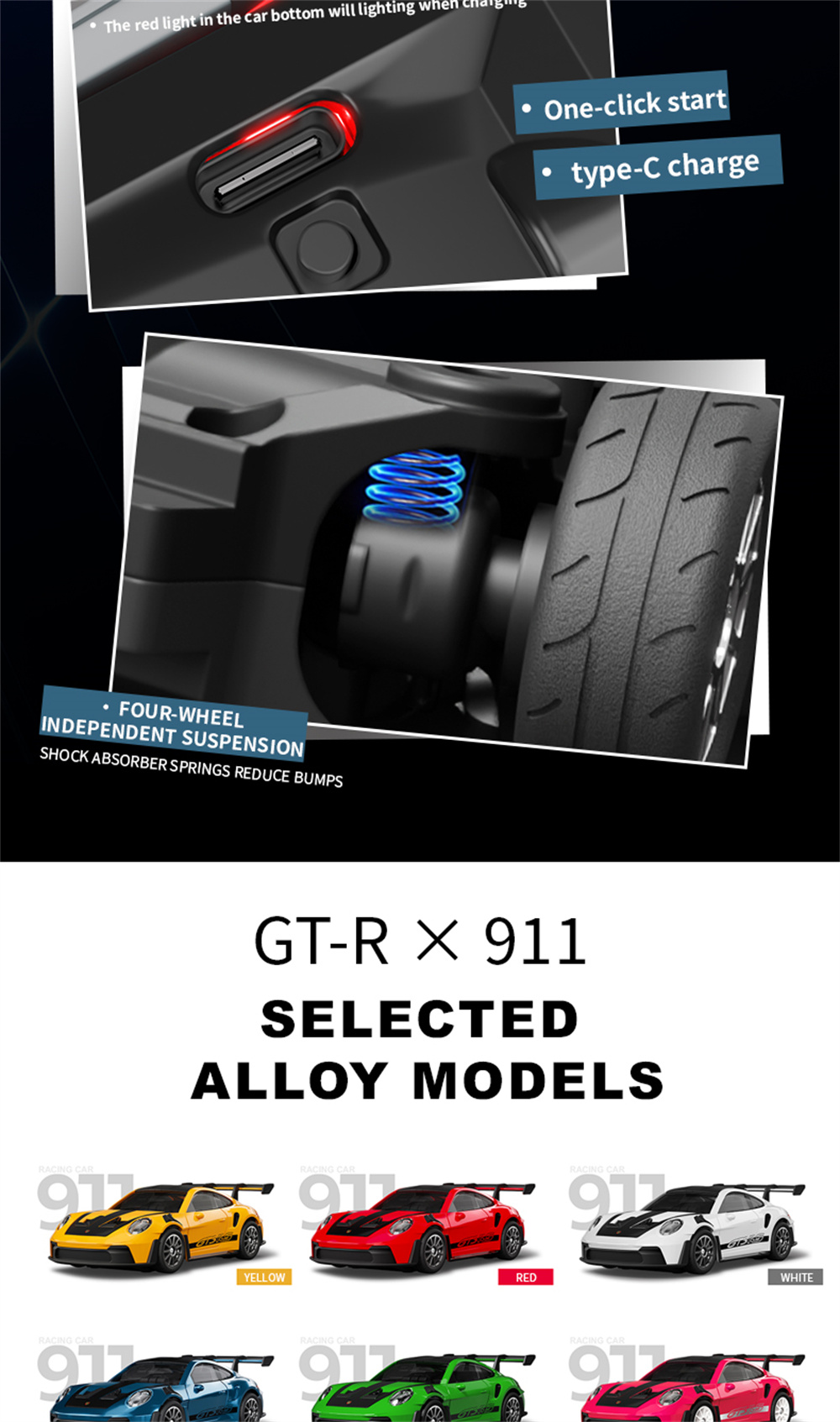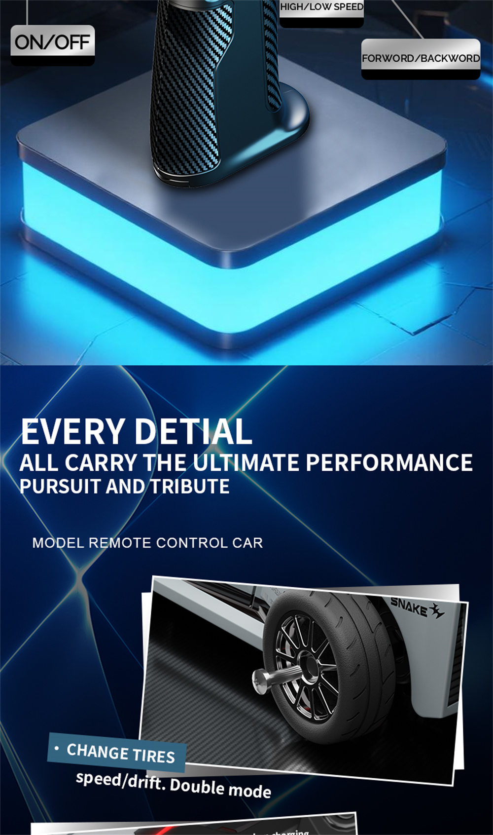 The whole vehicle adopts silent bearings, full-proportional electronic steering ratio adjustment, gyroscope sensitivity adjustment, speed adjustment, controllable front and rear/chassis led lighting