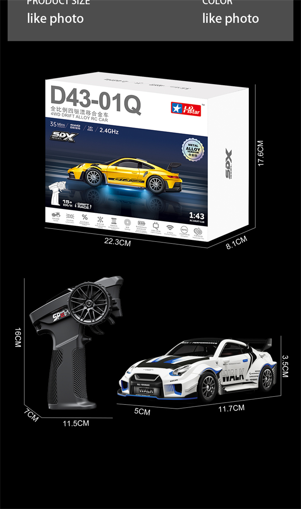 Car Size:11.7*5*3.5cm Remote Controller Size:16*11.5*7cm Box Size:22.3*17.6*8.1cm |