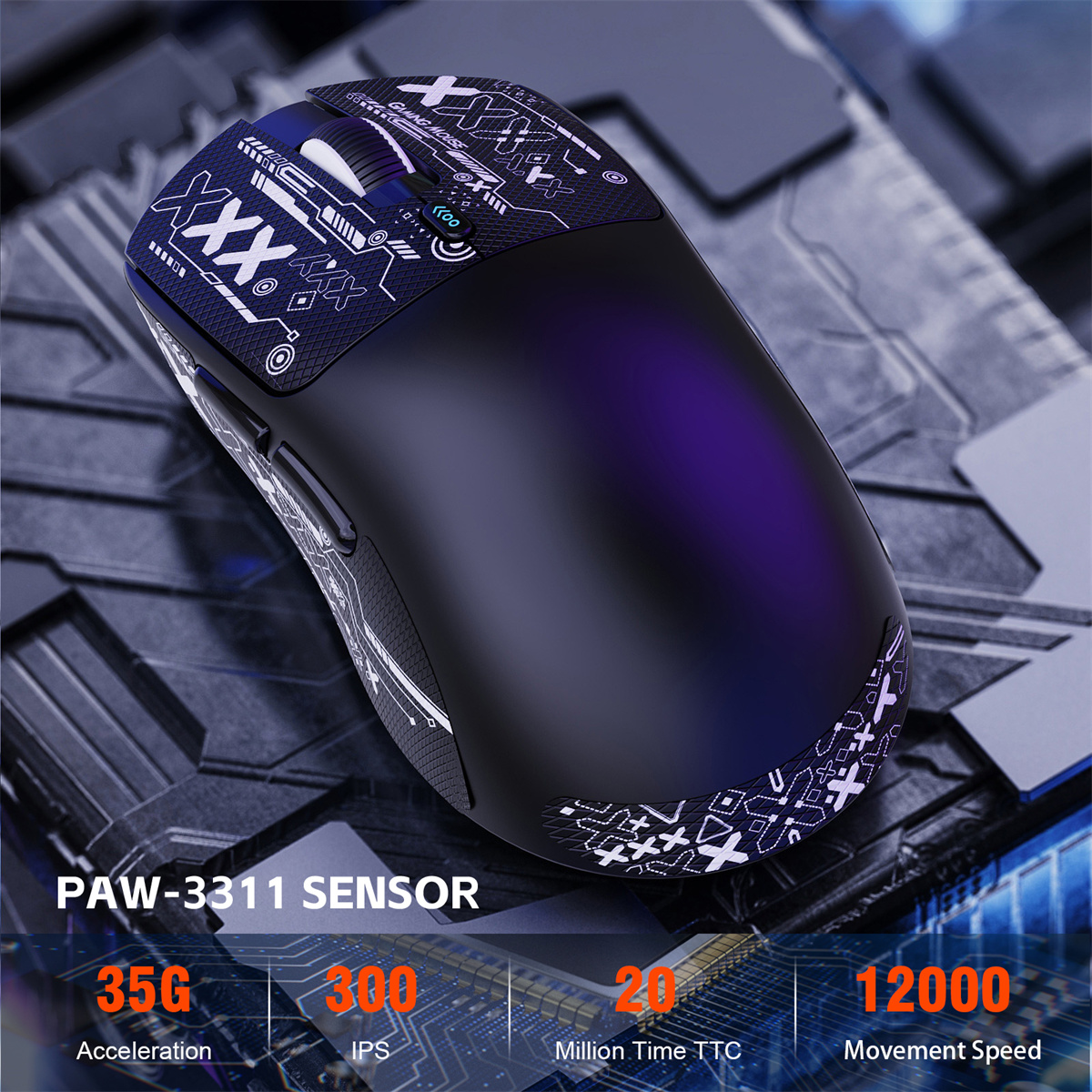 2. High Precision Sensor: Equipped with PixArt PAW 3311 sensor with 35G acceleration and 300 IPS tracking for efficient response.