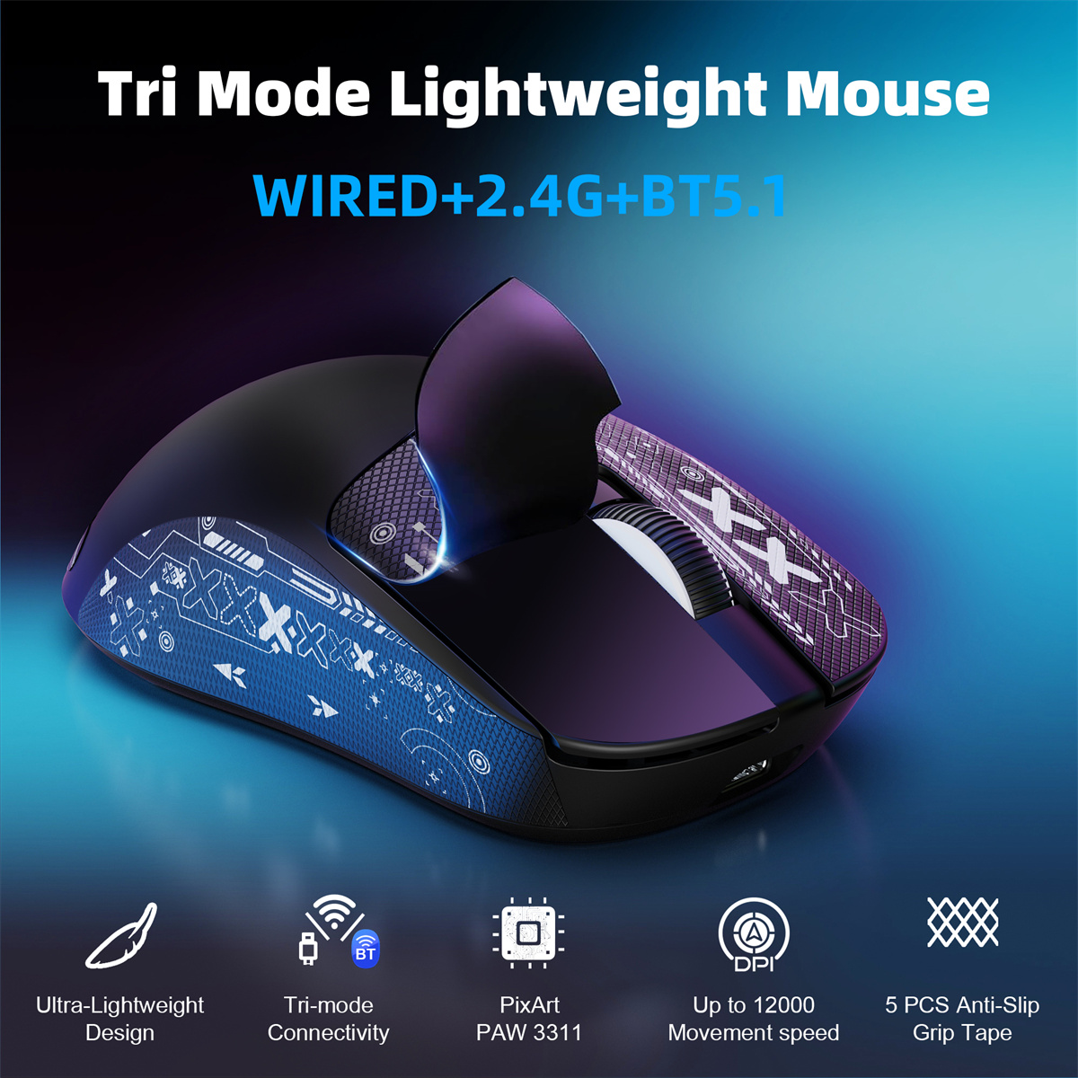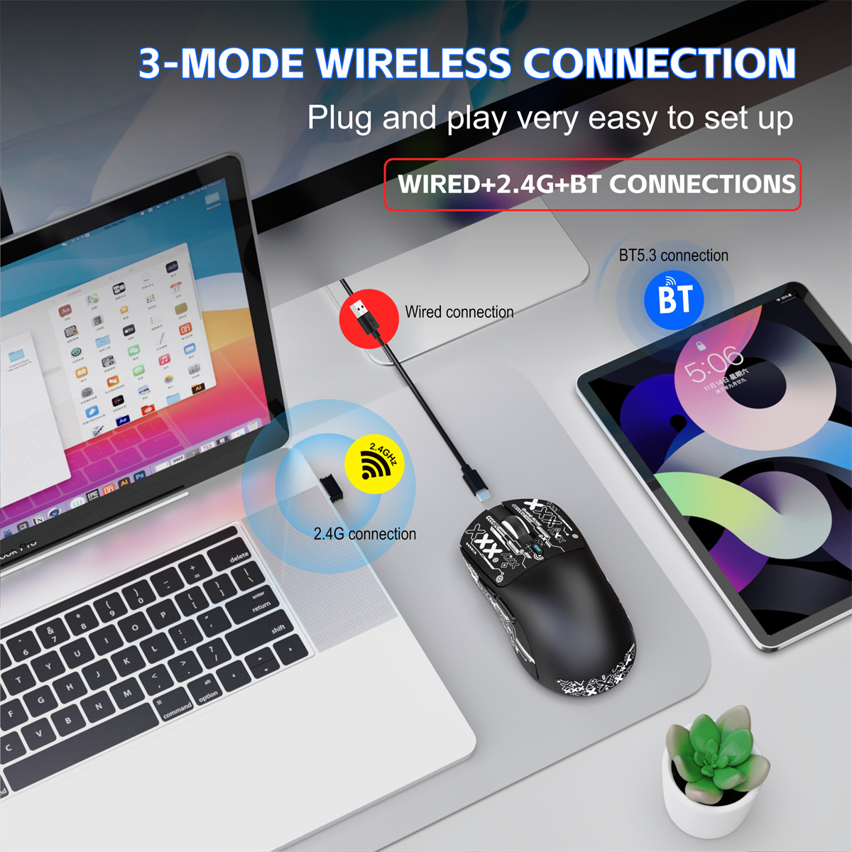 1. Tri-Mode Connectivity: Offers wired, 2.4GHz, and bluetooth 5.1 modes for seamless integration with various devices.