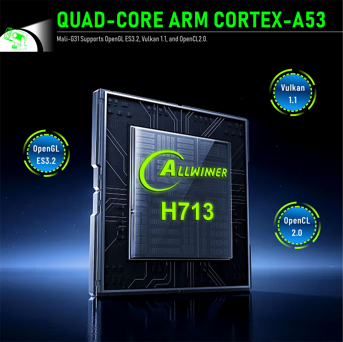 CPU | Allwinner H713, Quad-core ARM Cortex-A53 |