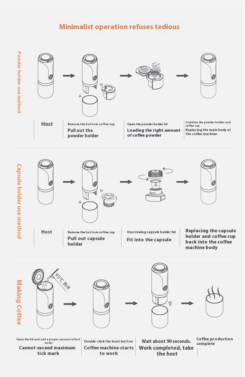 - One-Button Minimalist Extraction: Simplify your brewing process with our intuitive one-button system. Just double-click to start automatic extraction, providing you with a seamless coffee-making experience.