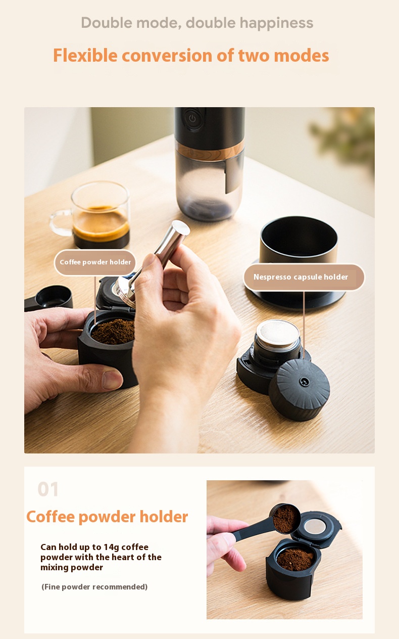 - Powder Tray/Capsule Dual Mode: Versatile brewing options with a coffee powder tray that holds up to 14g of coffee and a capsule tray compatible with Nespresso coffee capsules. This allows you to enjoy over 60 unique flavors from Nestle.