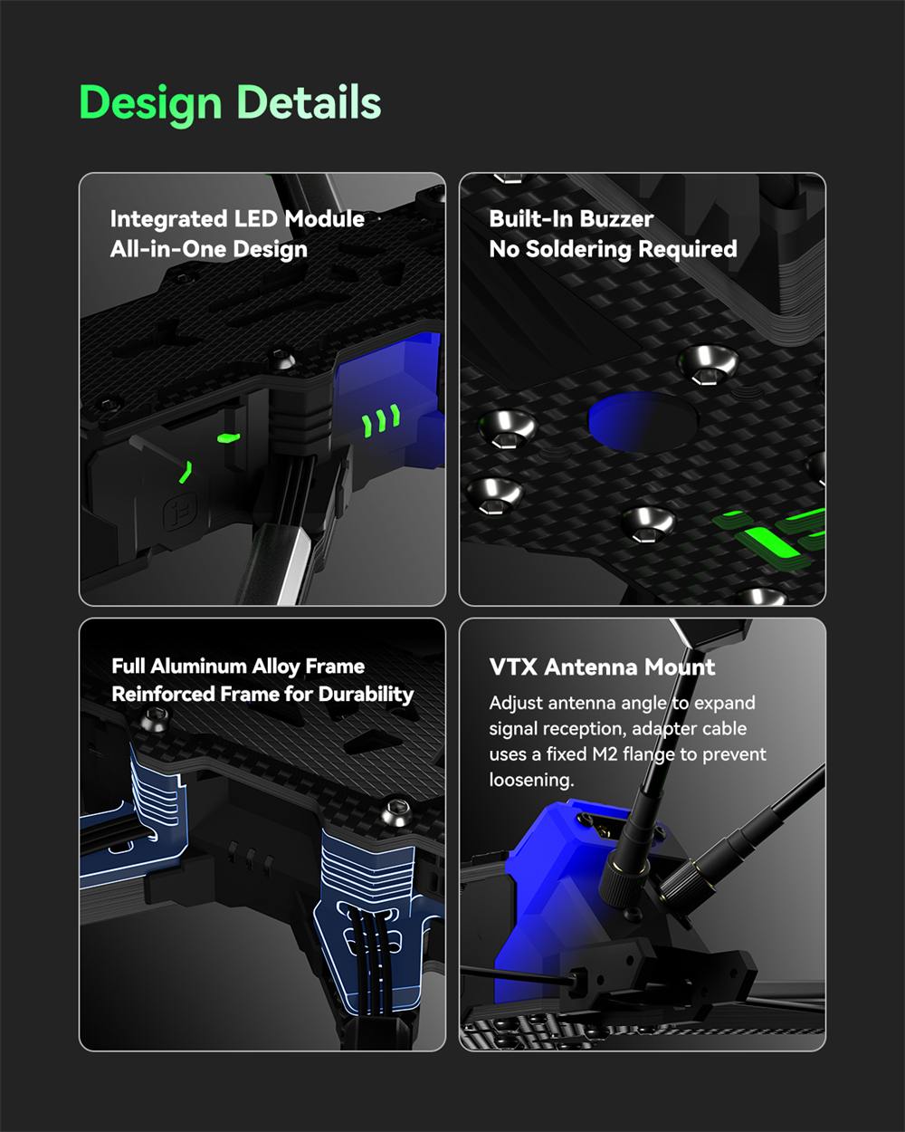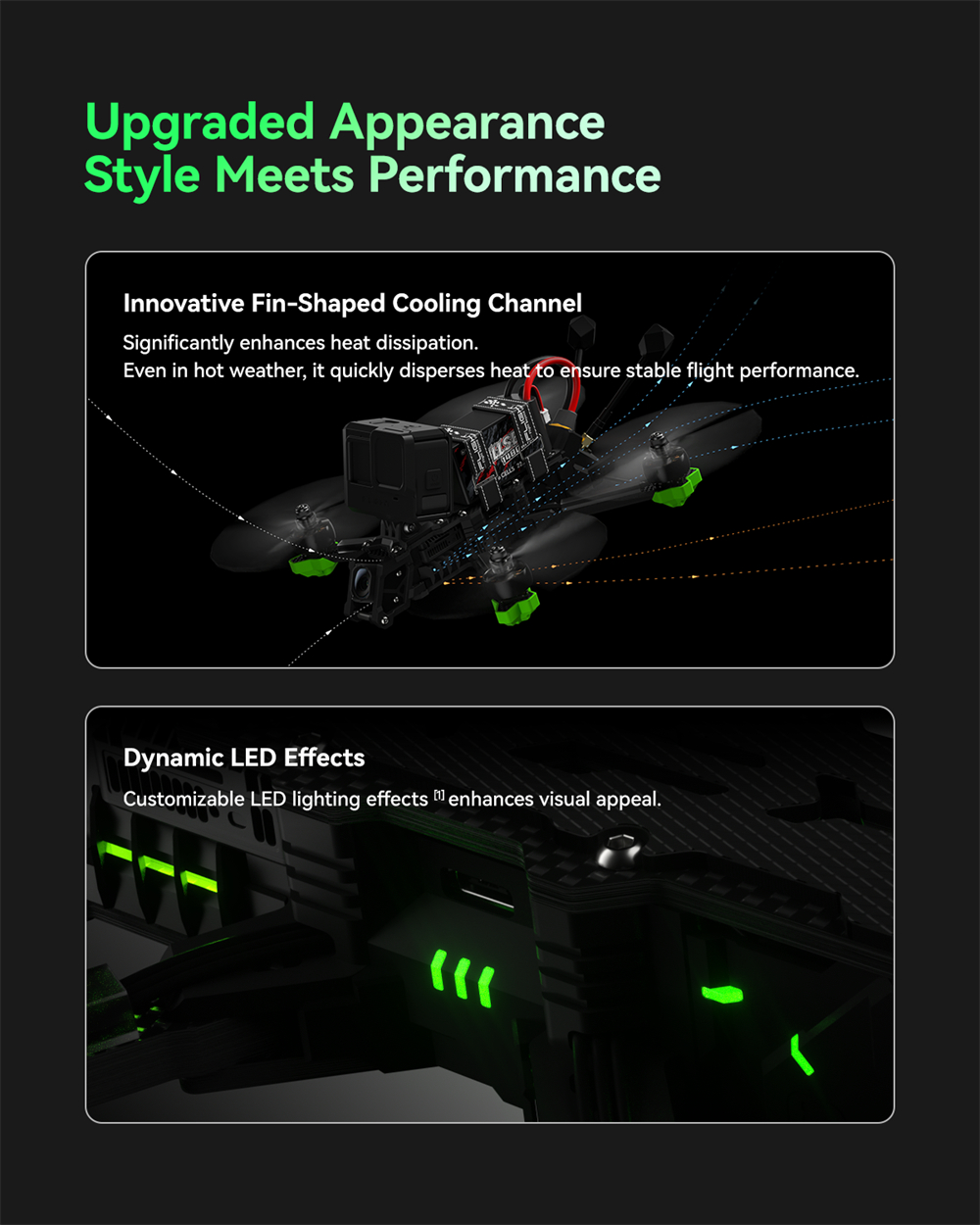 Innovative Fin-Shaped Cooling Channel significantly enhances heat dissipation. Even in hot weather, it quickly disperses heat to ensure stable flight performance.