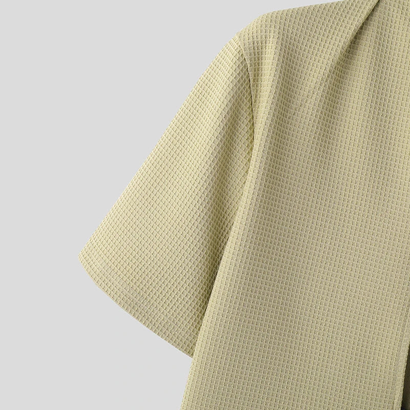 1 X Japanese and Korean Style Woof Grid Short Sleeve Zip Jacket.