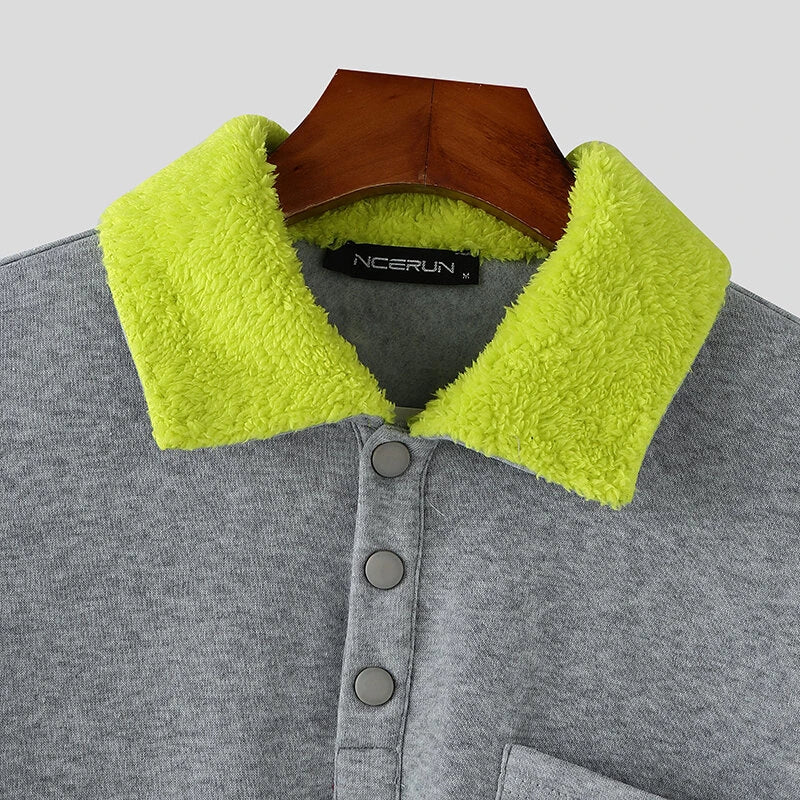 INCERUN Mens Color-Block Panel Long-Sleeve Pullover Hoodie Fashion Loose Fit Top with Chest Pocket in Spring Fall Winter