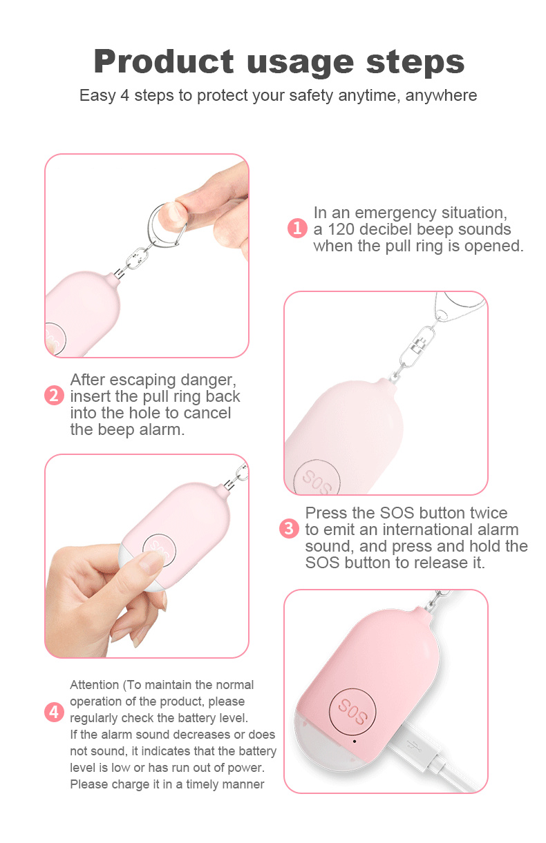 6. User-Friendly Operation: Easily activate the alarm by pulling the ring or double-clicking the SOS button for quick action in critical situations.