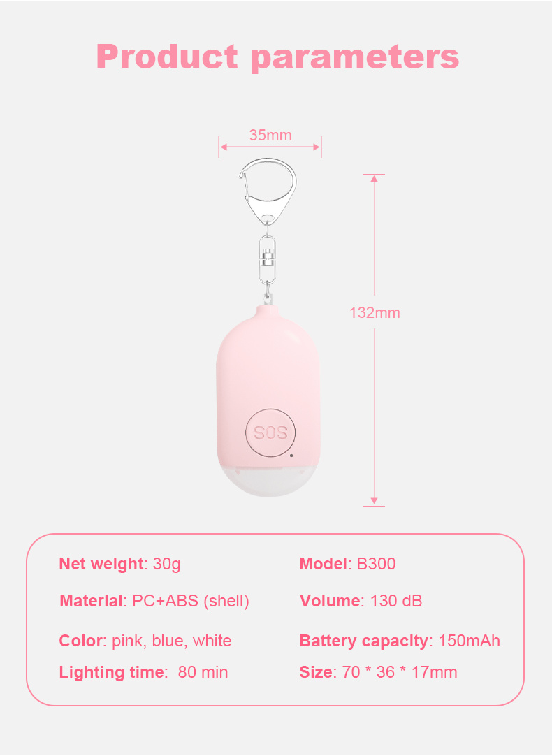 1. High-Pitched Alarm: Emits a powerful 130 dB sound for emergencies to deter threats and alert others nearby.