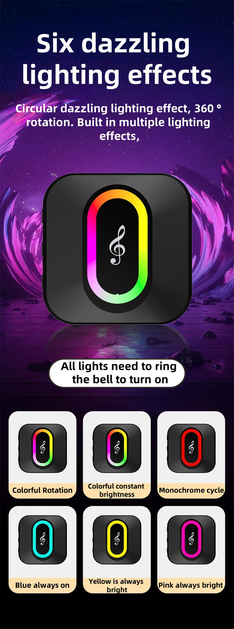 1. Multicolor LED Effects: Six unique lighting modes, including colorful rotation and monochrome cycles, offering aesthetic appeal to your home.
