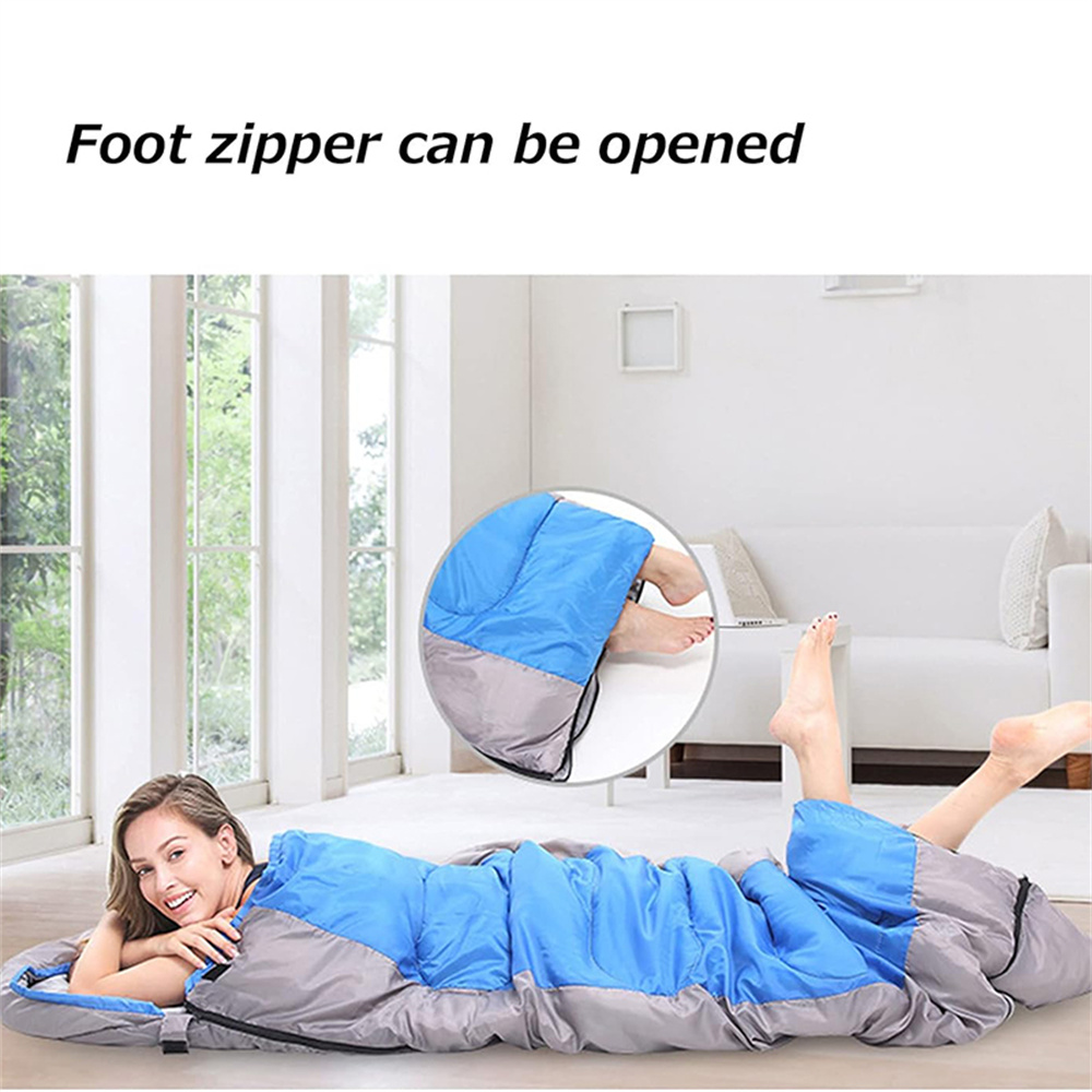 5. [Multiple Uses] Our adult camping sleeping bag can not only be used as a single person sleeping bag, but can also be laid flat as a floor mat, and zippered with another sleeping bag as a double person sleeping bag. It has various functions and is very suitable for sleeping bags that enjoy camping, fishing, and hotels.
