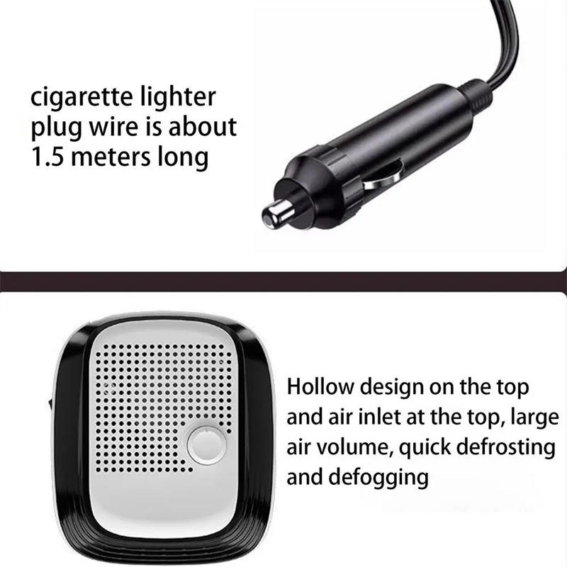 1.One second out of the warm wind, quickly defrosting. Fast defrosting without blocking sight.2.The wind warms the whole car, 360° heat dissipation, and allows the warm wind to blow to you want.3.Driving does not block the line of sight, small does not take up space, small and exquisite design, does not take up excess position to give you just the right warmth.4.Strong double-sided tape, open the protective film, easy installation, lighter plug wire length of about 1.5 meter.5.Top hollow design, top inlet, large defrosting and defogging faster.