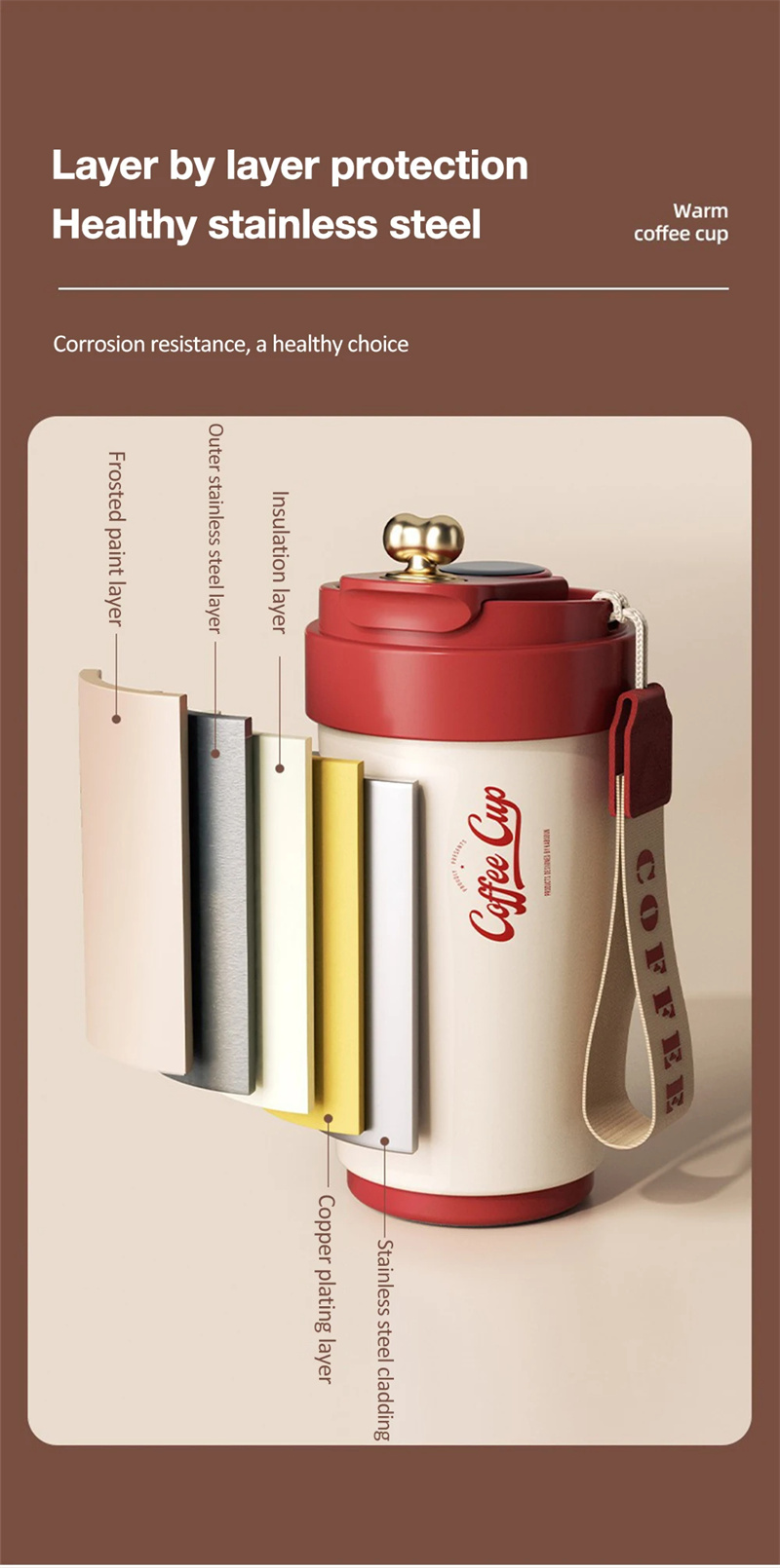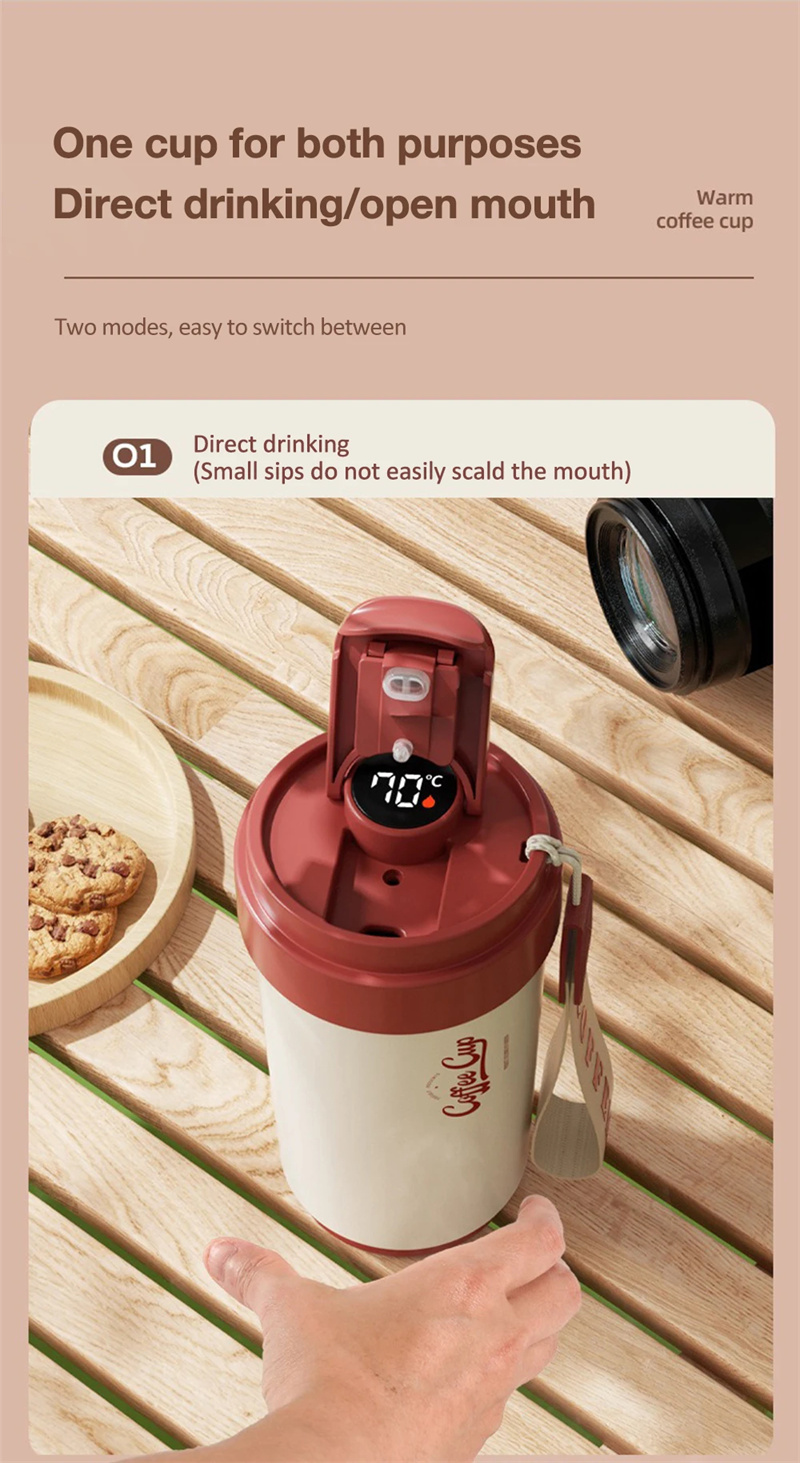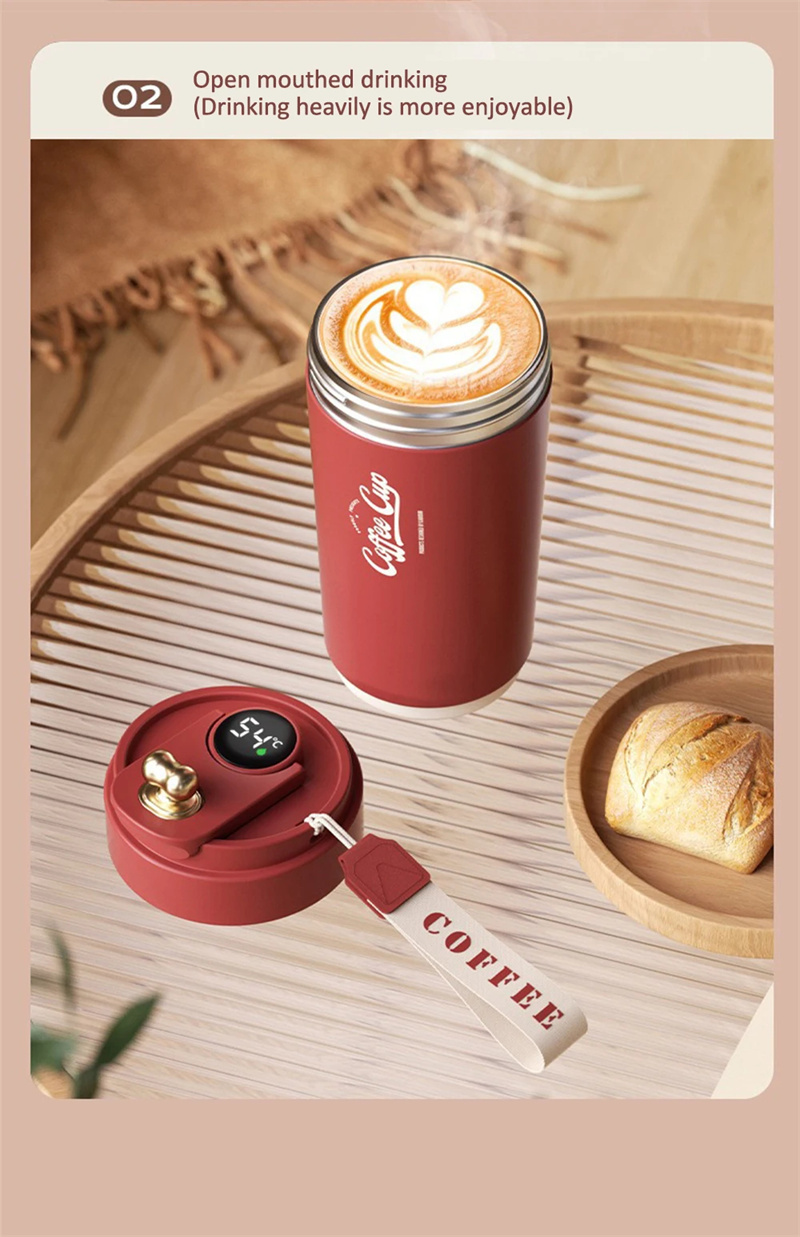 1.Smart insulated coffee cup on the go, intelligent temperature display, double-layer ceramic coating, portable, simple and stylish, multi-functional storage meet daily storage needs.