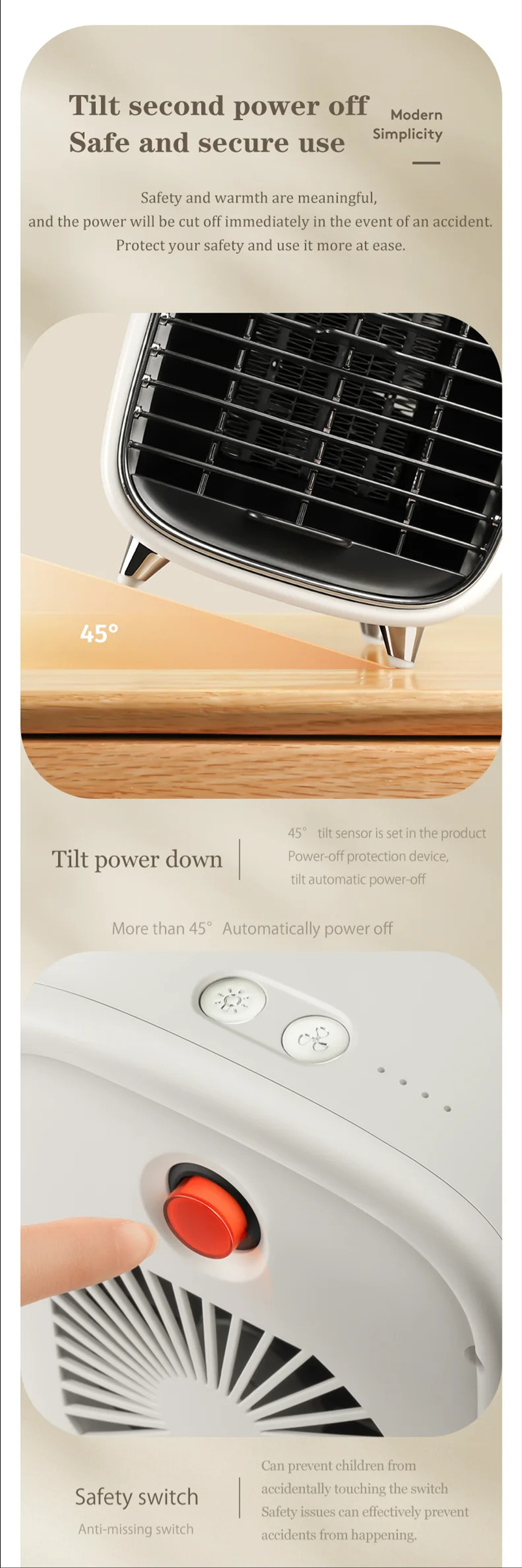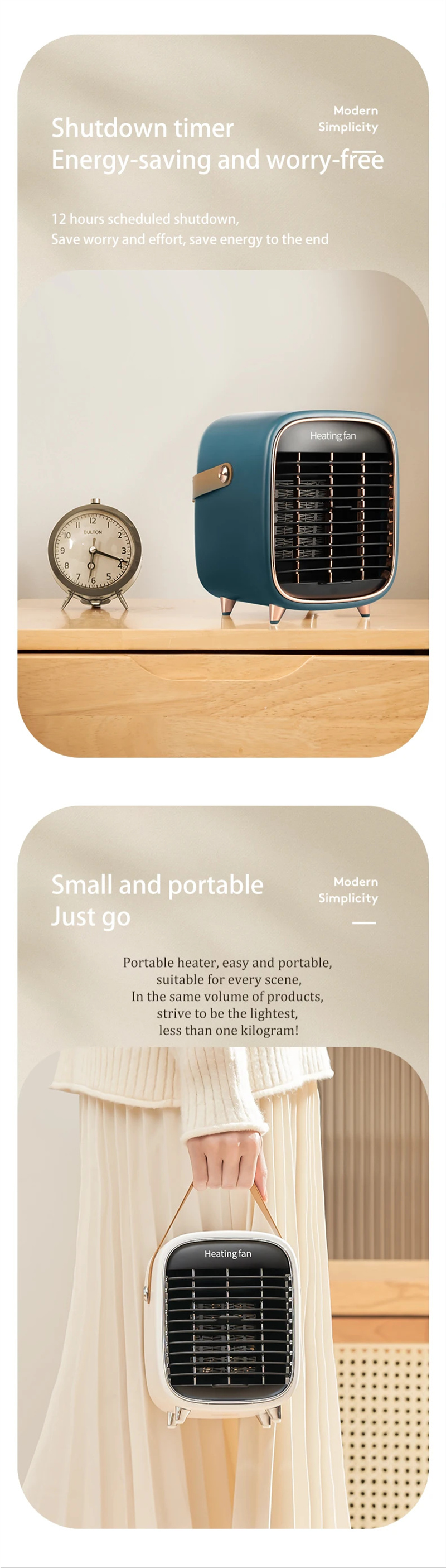 The electric space heater has a carrying handle that is convenient to carry. The portable heater is compact and portable. Place a small space heater in the bedroom, office where you need heating. Reduce Heating Bills with a Safe Space Heater