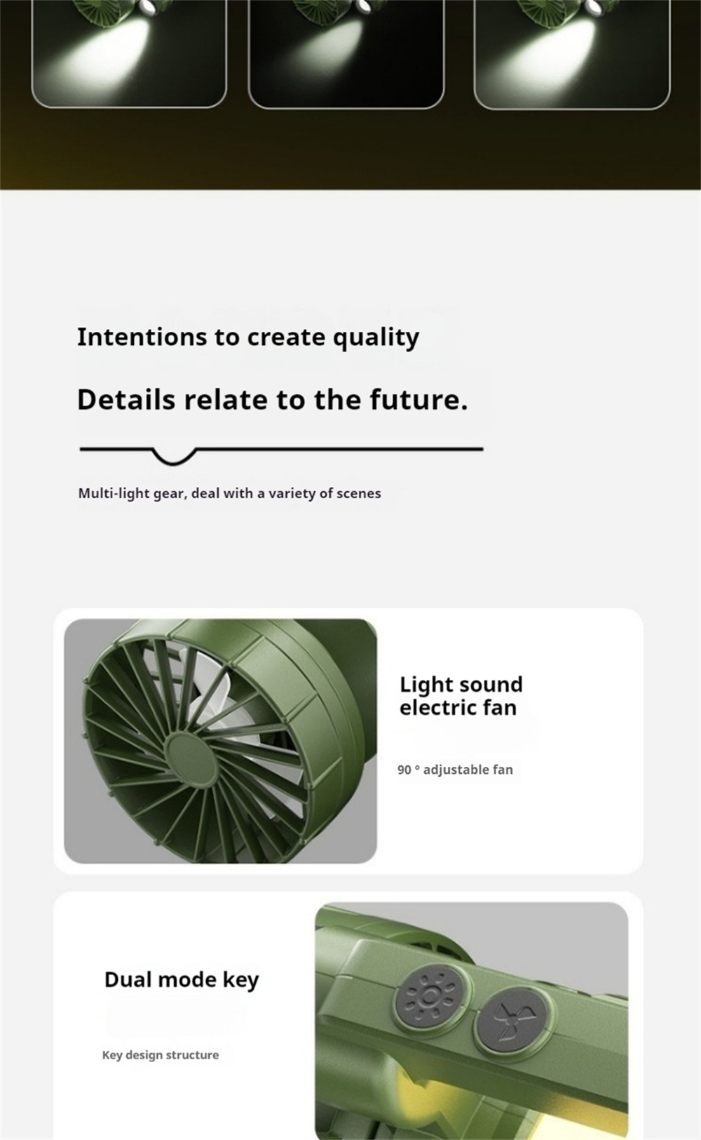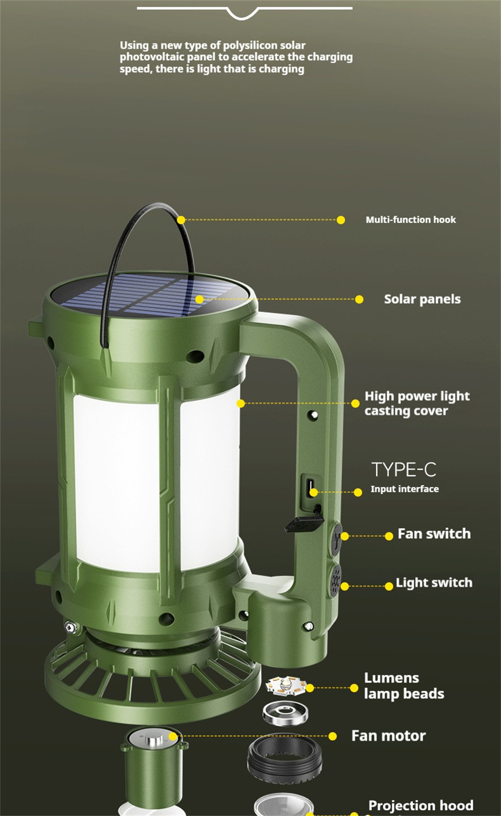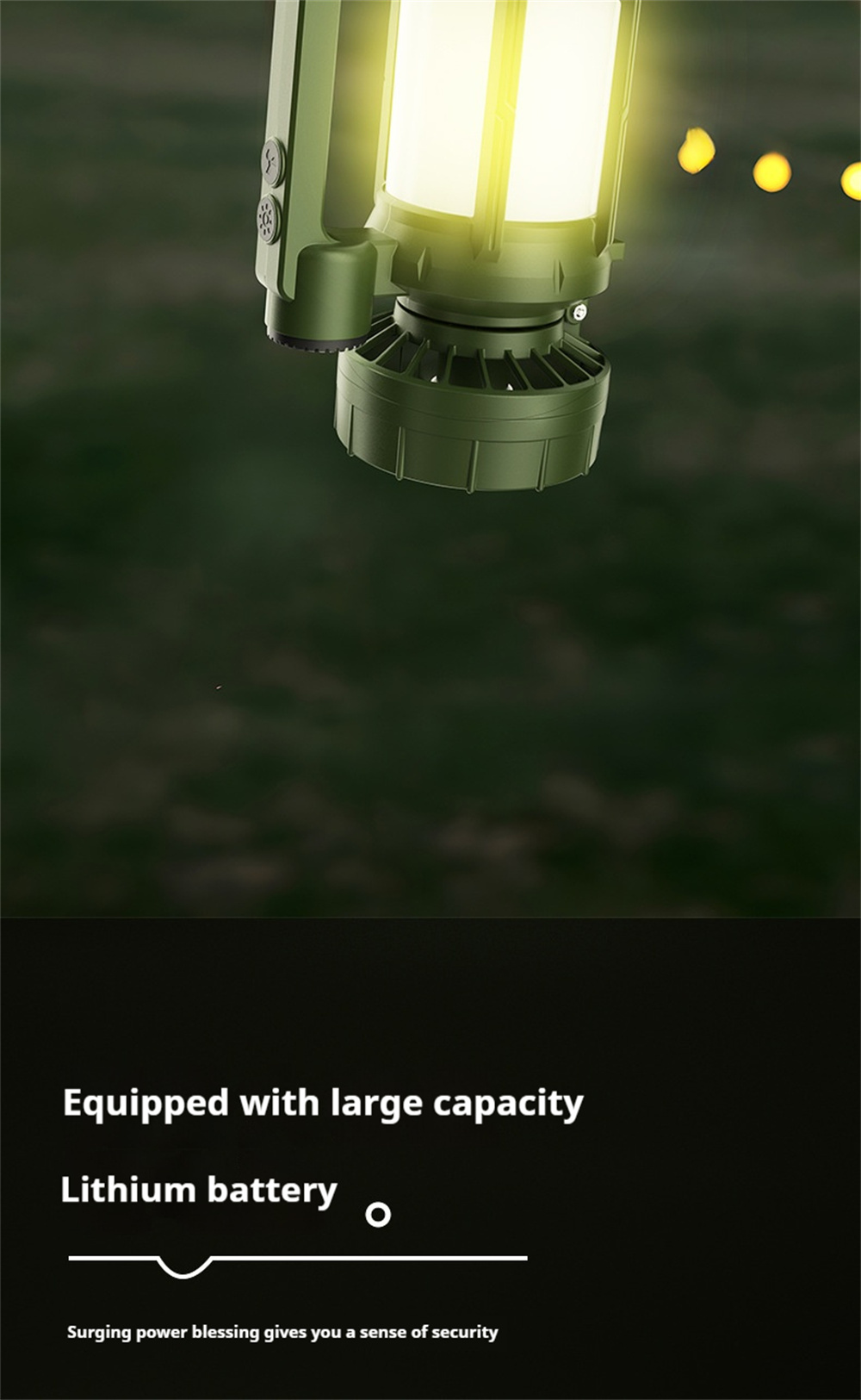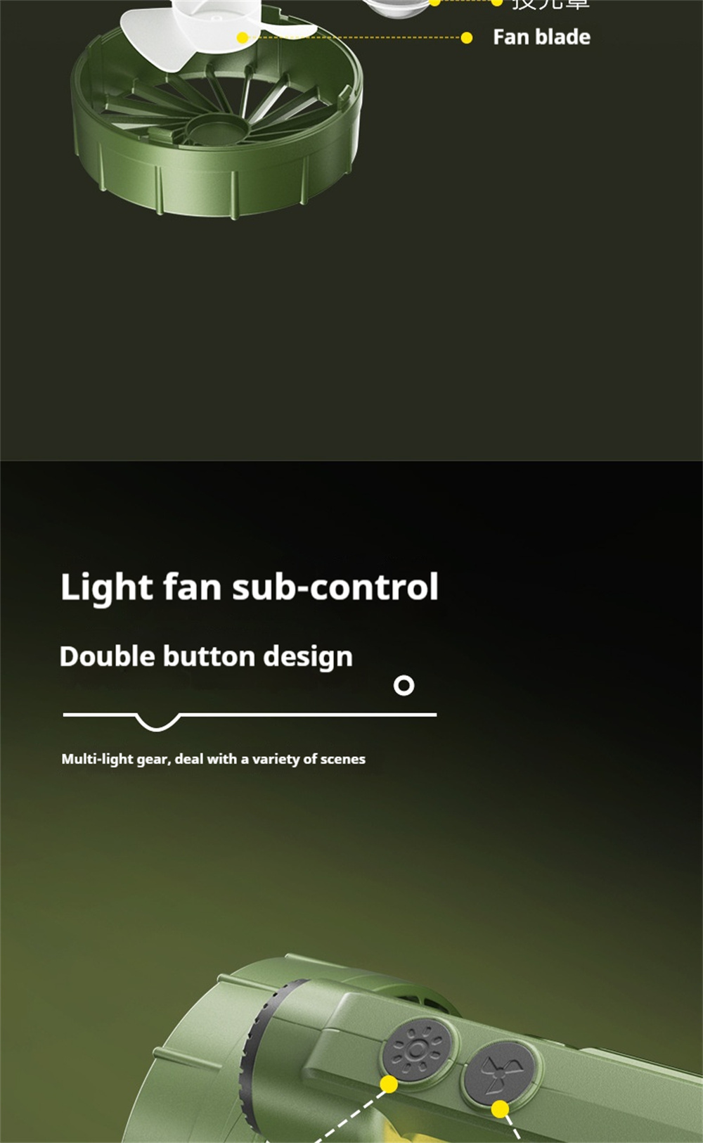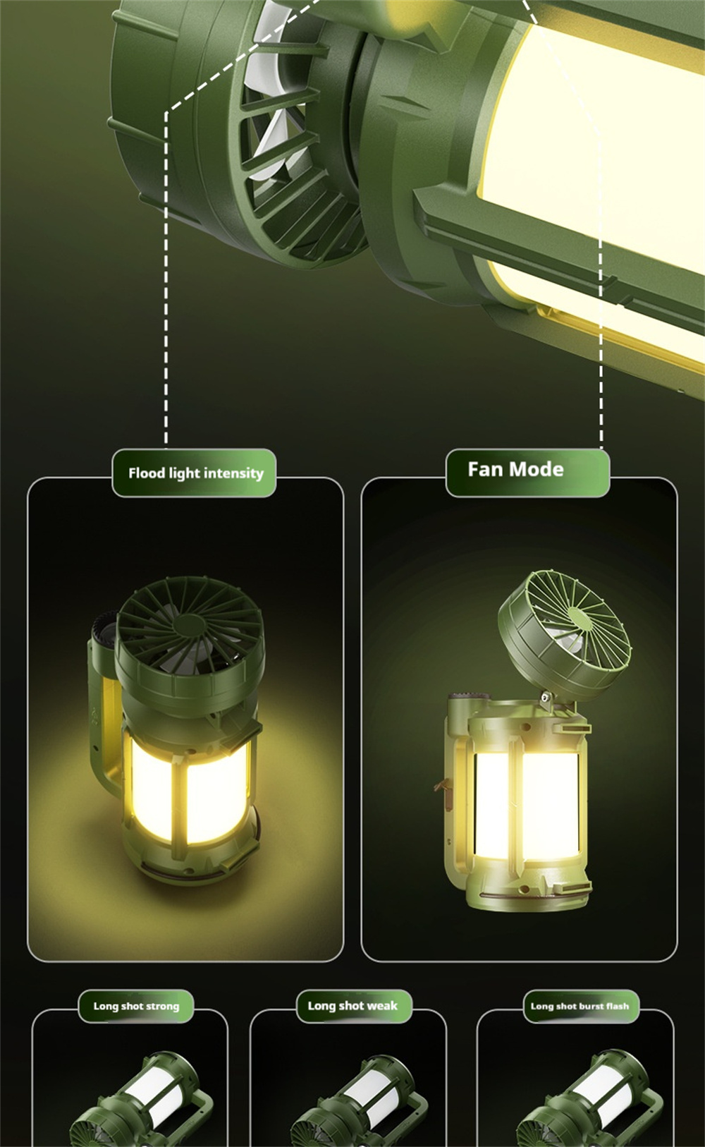 3.High-capacity Battery: Featuring a large capacity lithium battery, this light ensures long endurance in dual-mode operation, providing sustained illumination and ventilation when needed.