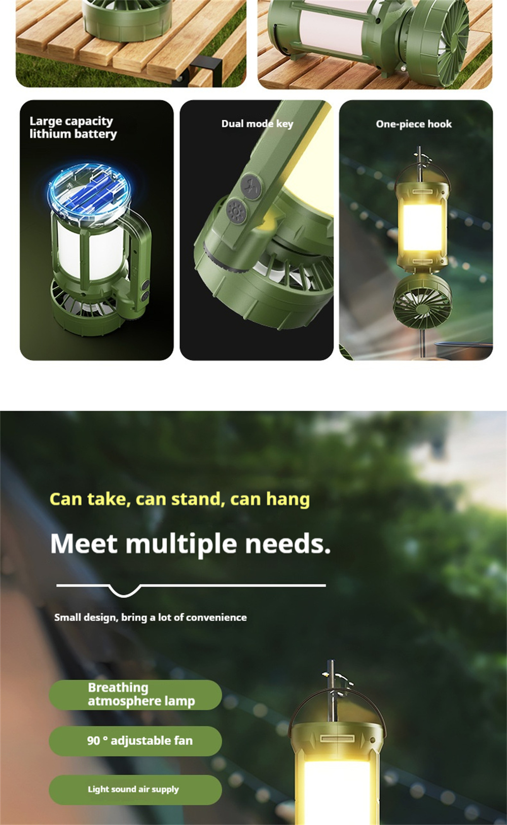 1.Versatile Functionality: This camping light serves multiple purposes as an atmosphere light, fan, and flashlight, making it an essential companion for outdoor adventures.