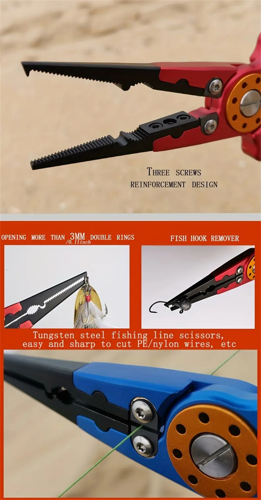1. Multifunctional: Combines fish control, line cutting, and open ring capabilities.