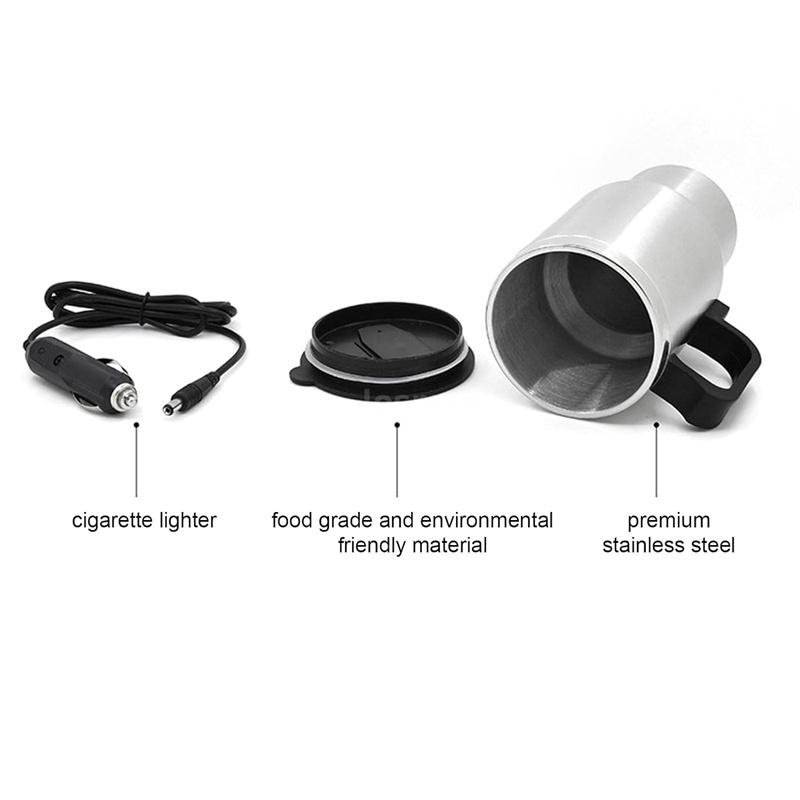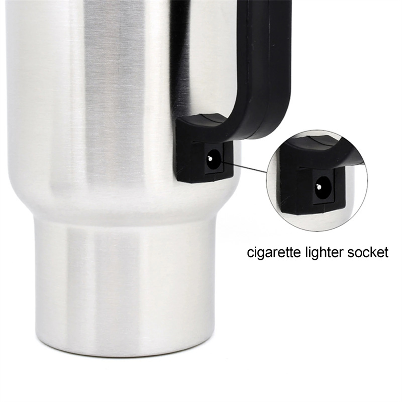 1.Made of stainless steel and food-grade material, safe to drink boiled water.2.Excellent sealing performance: The sealed kettle cover is made of silicon gel, safe and non-toxic, allowing hot drinks to stay at maximum temperature and preventing spillage.3.Insulation technology:Both inside and outside of travel cups adopt vacuum insulation technology, resulting in a good insulation effect on burns.4.Humanized design: This travel cup has an indicator light design to monitor the electric cup's working status and an anti-slip handle.5.Ideal for travel:Fits most car cup holdersand is great for travel use. This is suitable for drivers, businessmen, or anyone who needs a long driving trip.6.This electric kettle is powered by a 12V lighter plug supply, suitable for use with a 12V car.