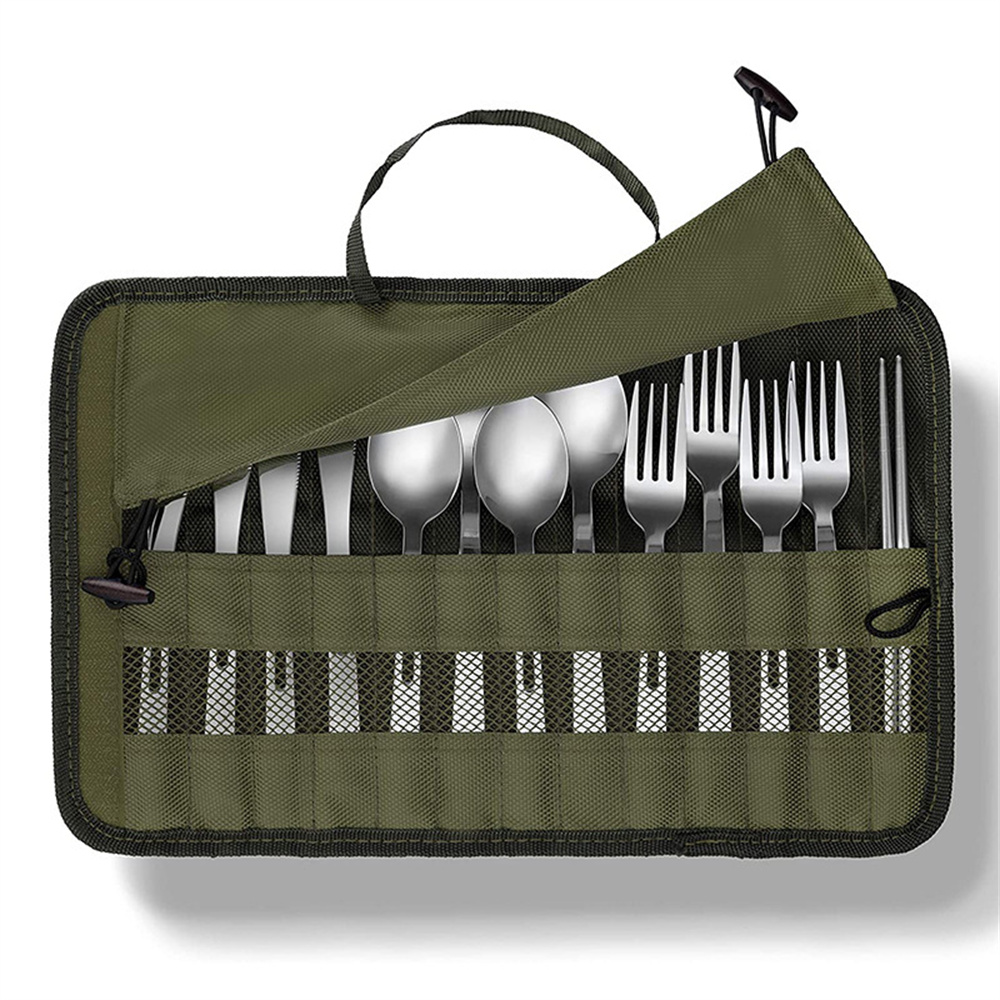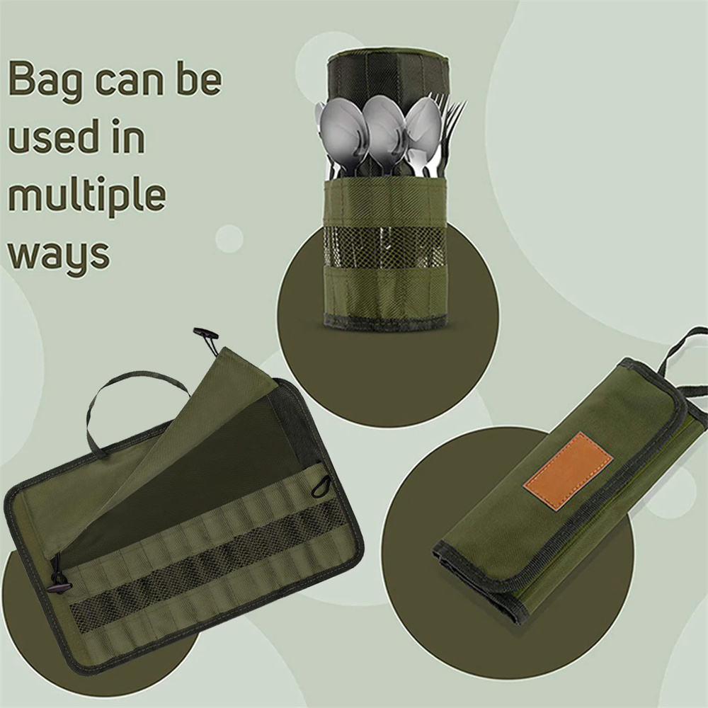3. Protective Cover: Portable polyester roll up pouch bag comes with a protective cover that safeguards your cutlery from dust, scratches, and damage. This thoughtful design ensures your utensils stay clean and ready for use at any time.