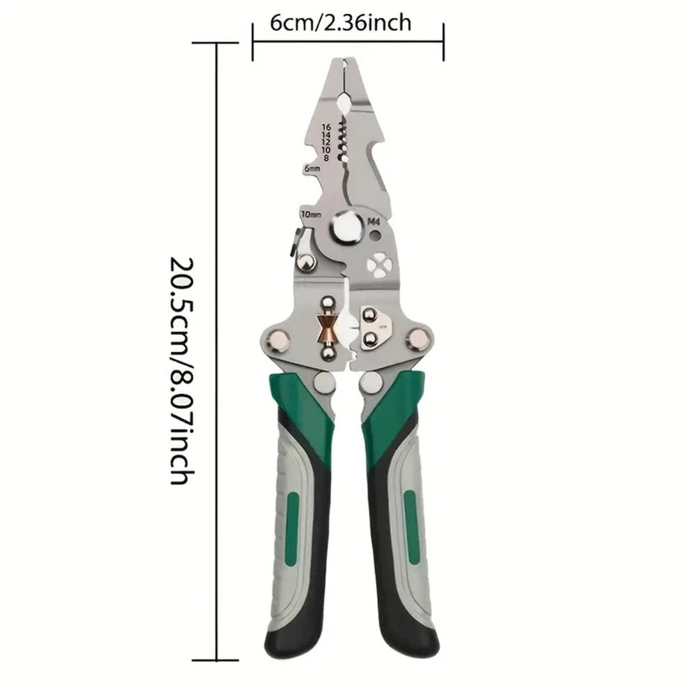 1.Discover the versatilities of our Multifunctional Folding Wire Stripper, designs to effortlessly handle various wire stripping tasks with precisions and ease.2.Crafted from quality carbon steel, this tool ensures long use performances and reliability, making it great in any tool box.for electricians, craft enthusiasts, and professional who require a great tool for electrical projects and repairs.3.Perfect for use in residential, commercial, and industrial setting, this wire stripper adapt seamlessly to different environment and tasks.4.Enhances your efficiency and productivity with this portable hand tool, engineered to deliver exceptionally result.