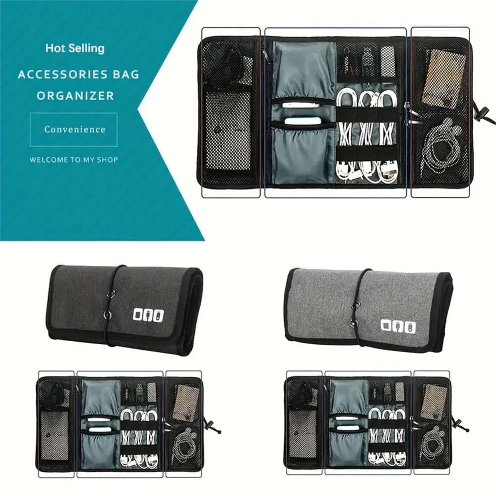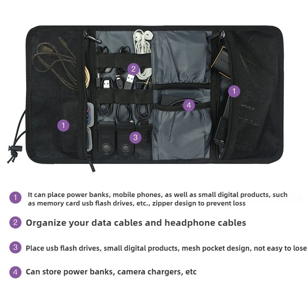 2.Multi functional: It integrates data cable storage, charger storage, travel storage and other functions, suitable for various scenarios such as outdoor sports, travel photography, etc