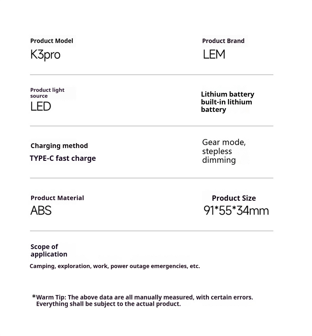 | Ideal for | Hiking,Camping,Daily Carry,Night Fishing |