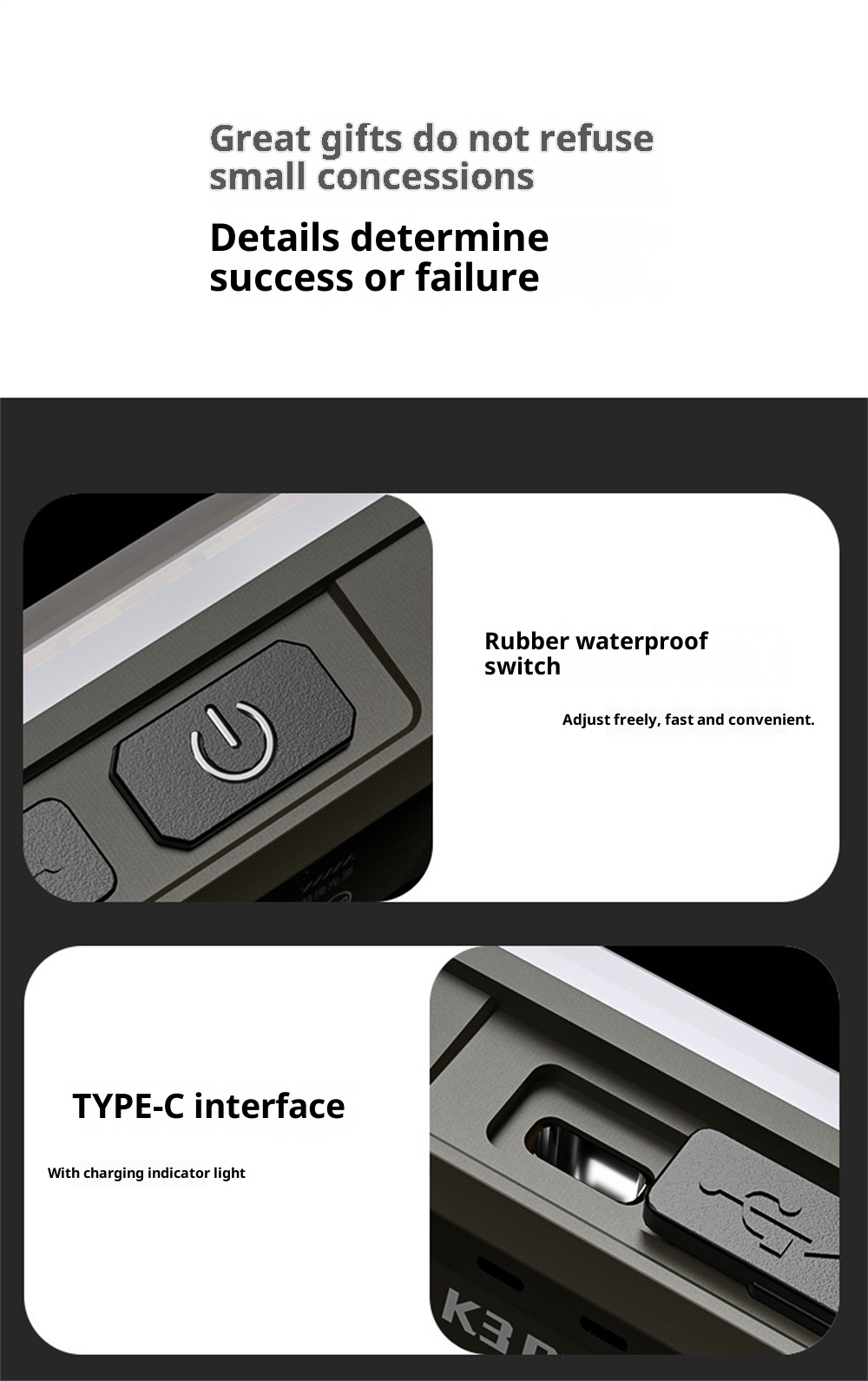 1. Powerful brightness ensures safety and visibility.