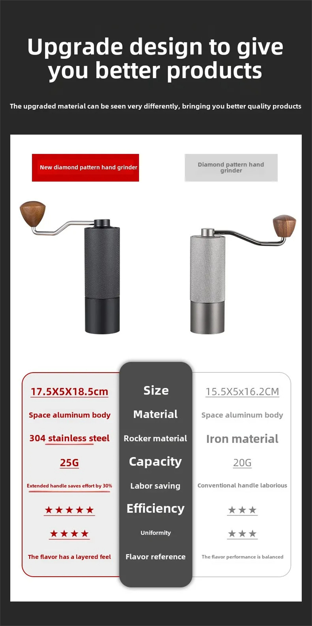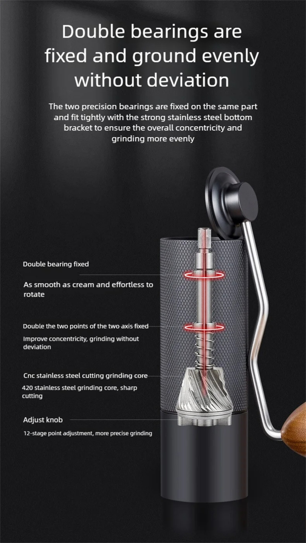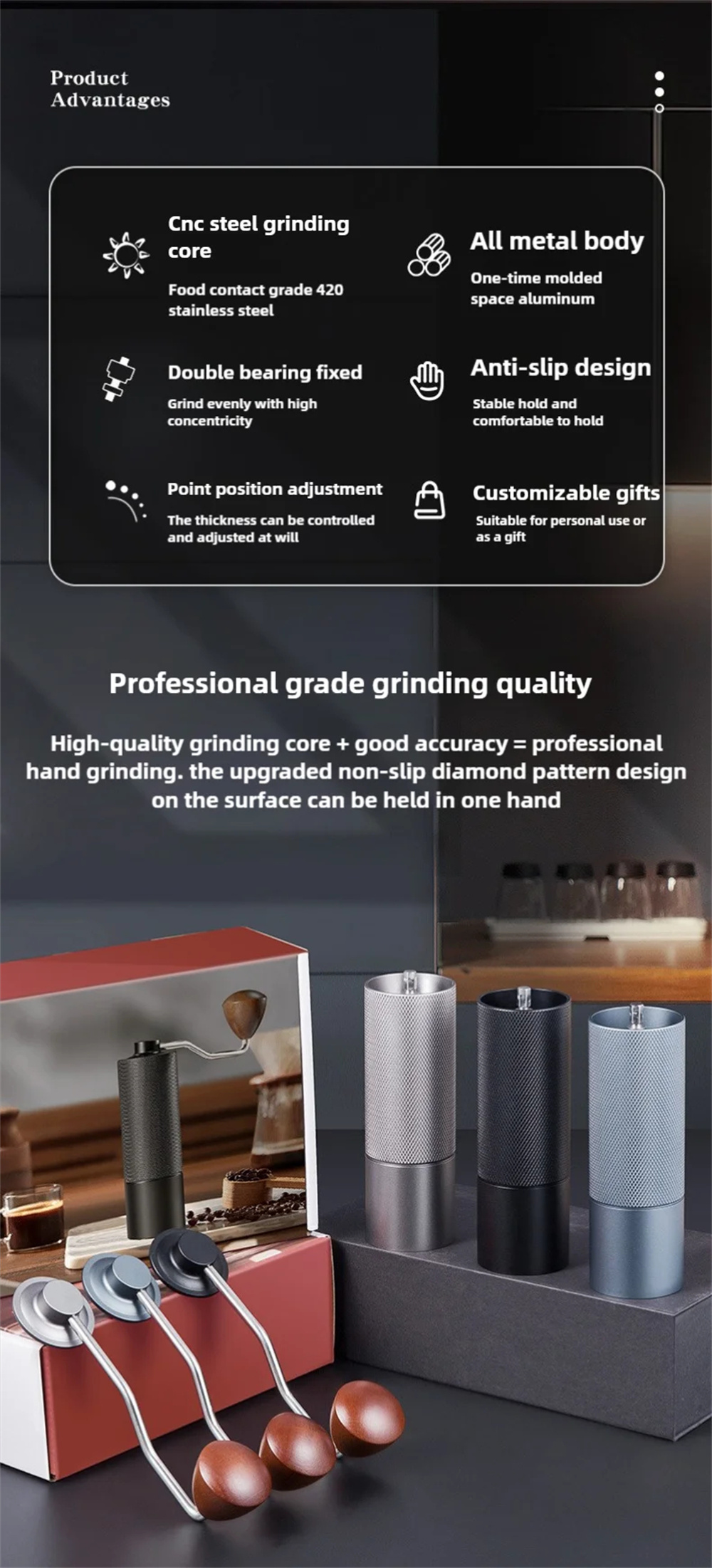 Lightweight and compact, our grinder is designed for easy portability—perfect for brewing fresh coffee wherever you go.