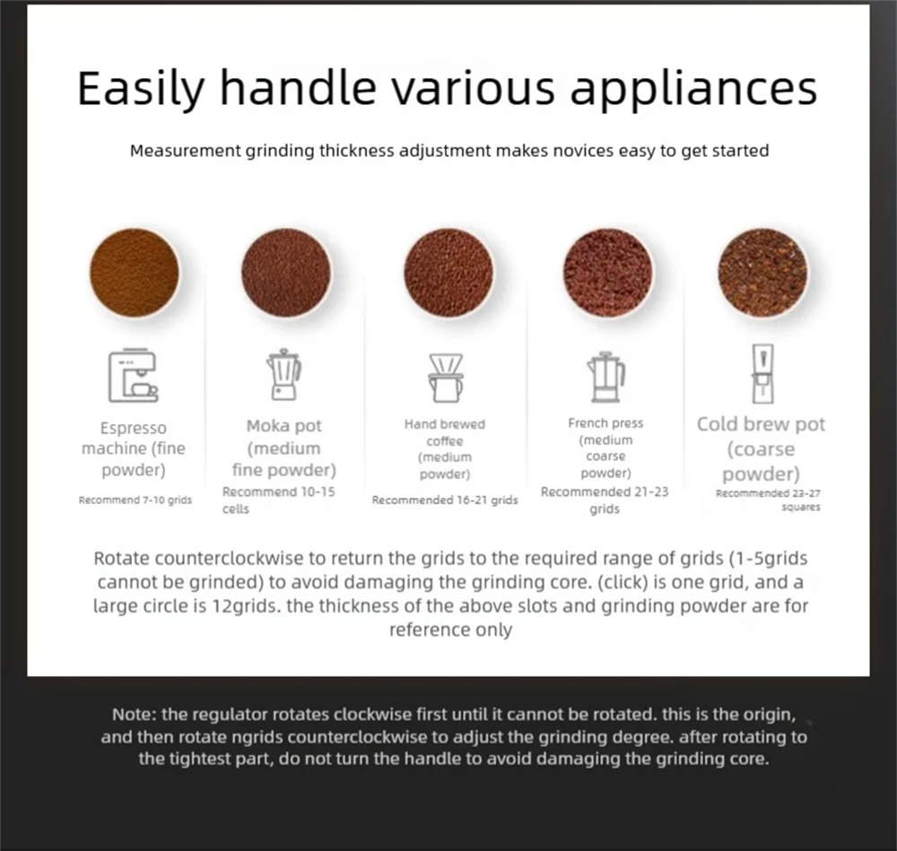 Enjoy the hands-on experience of manual grinding, giving you full control over grind size and espresso quality.