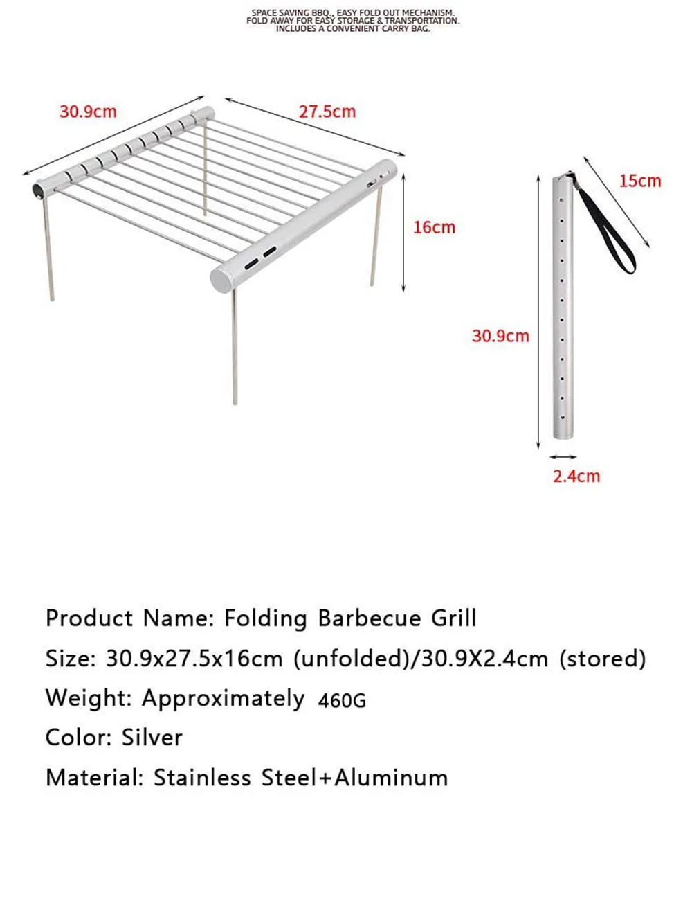 4.Durable0 Material:Crafted from stainless steel and aluminum alloy, this grill withstands high temperatures and is built to last.