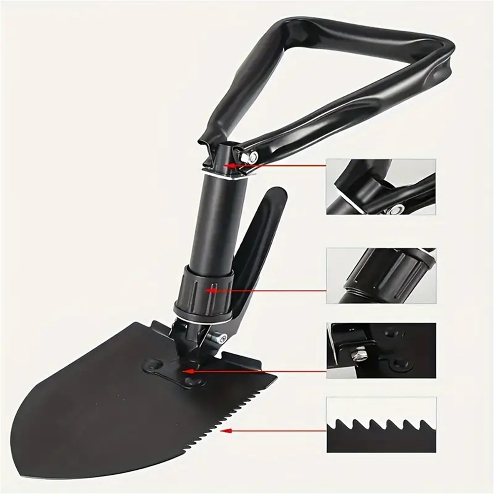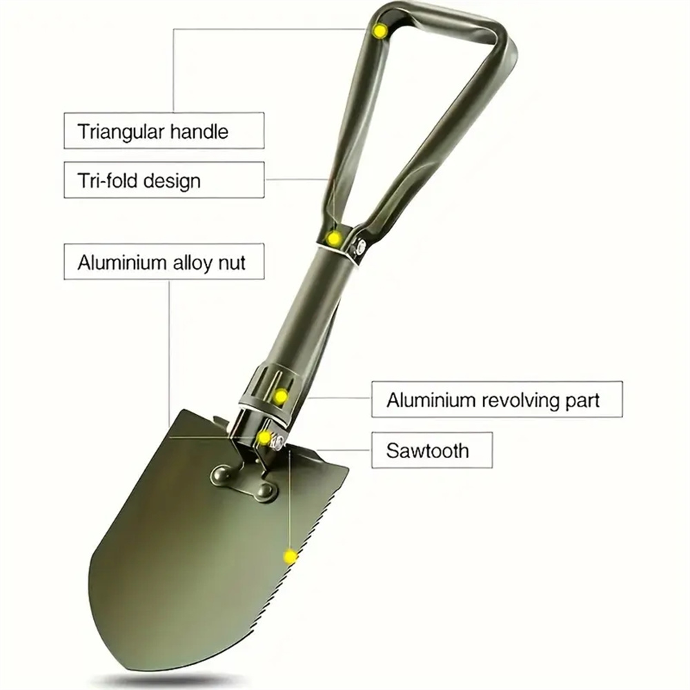 3. Made of 45# High-Carbon Steel Body, Heat-Treated 0.06' Thick Blades w/ Sawtooth, this tactical military shovel is rust-resistance & anti-deformation; Triangular large handle design is anti-slip and effectively reduce hand fatigue and wrist strain.