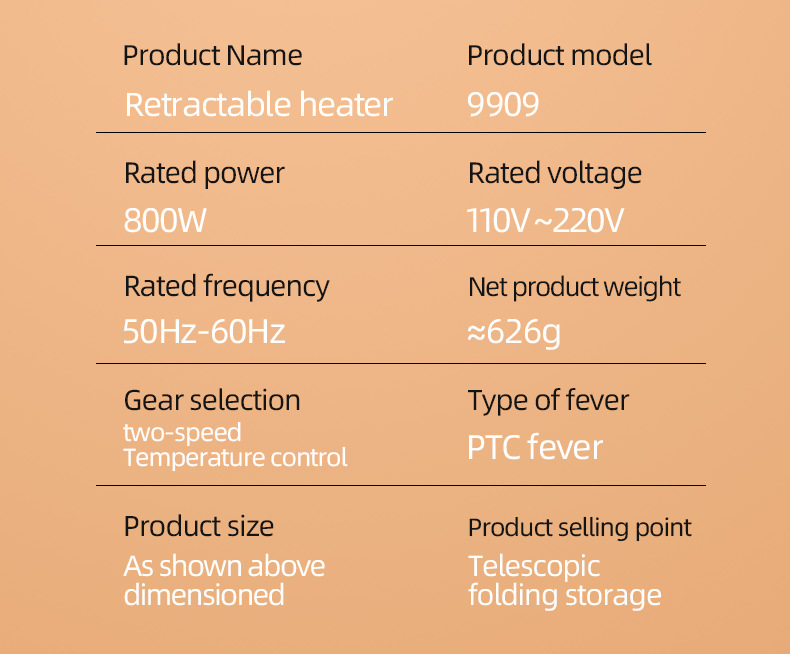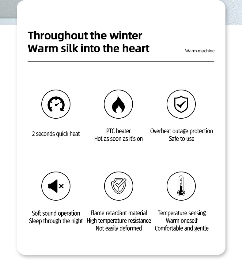 3.Small body can be heated everywhere. The body is small and does not an area. It can be placed anywhere without any burden to release space for families