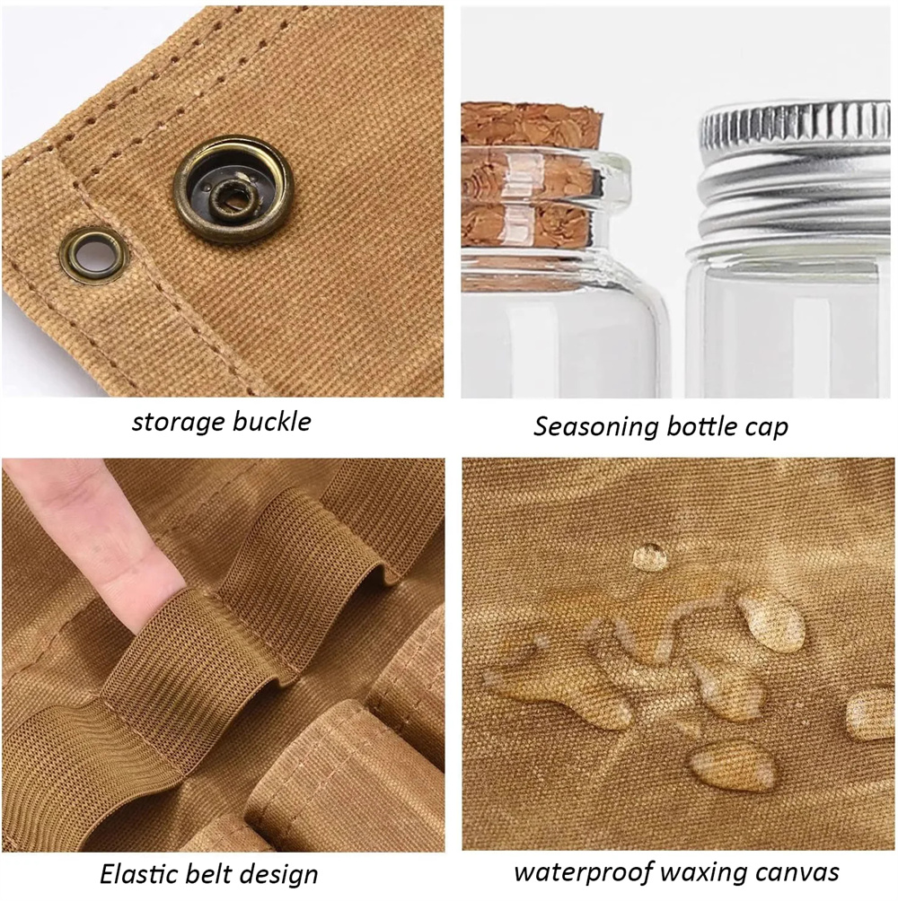 1.Discover the convenience with our Camping Jar Bag, featuring a portable design and 9 jars for all your seasoning needs during outdoors adventures.