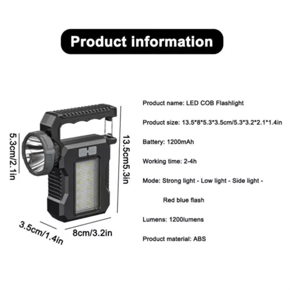 3.The hand light adopts polycrystalline silicon charging board, which has high photoelectric conversion efficiency.