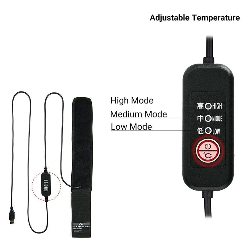 2.Three-speed Temperature Control: This lens dew heater comes with three-speed temperature control of high temperature about 55℃ (131F) 65℃ (149F), mid-range temperature about 45℃ (113F) 55℃ (131F), and low temperature about 35℃ (95F) to 45℃(113F).