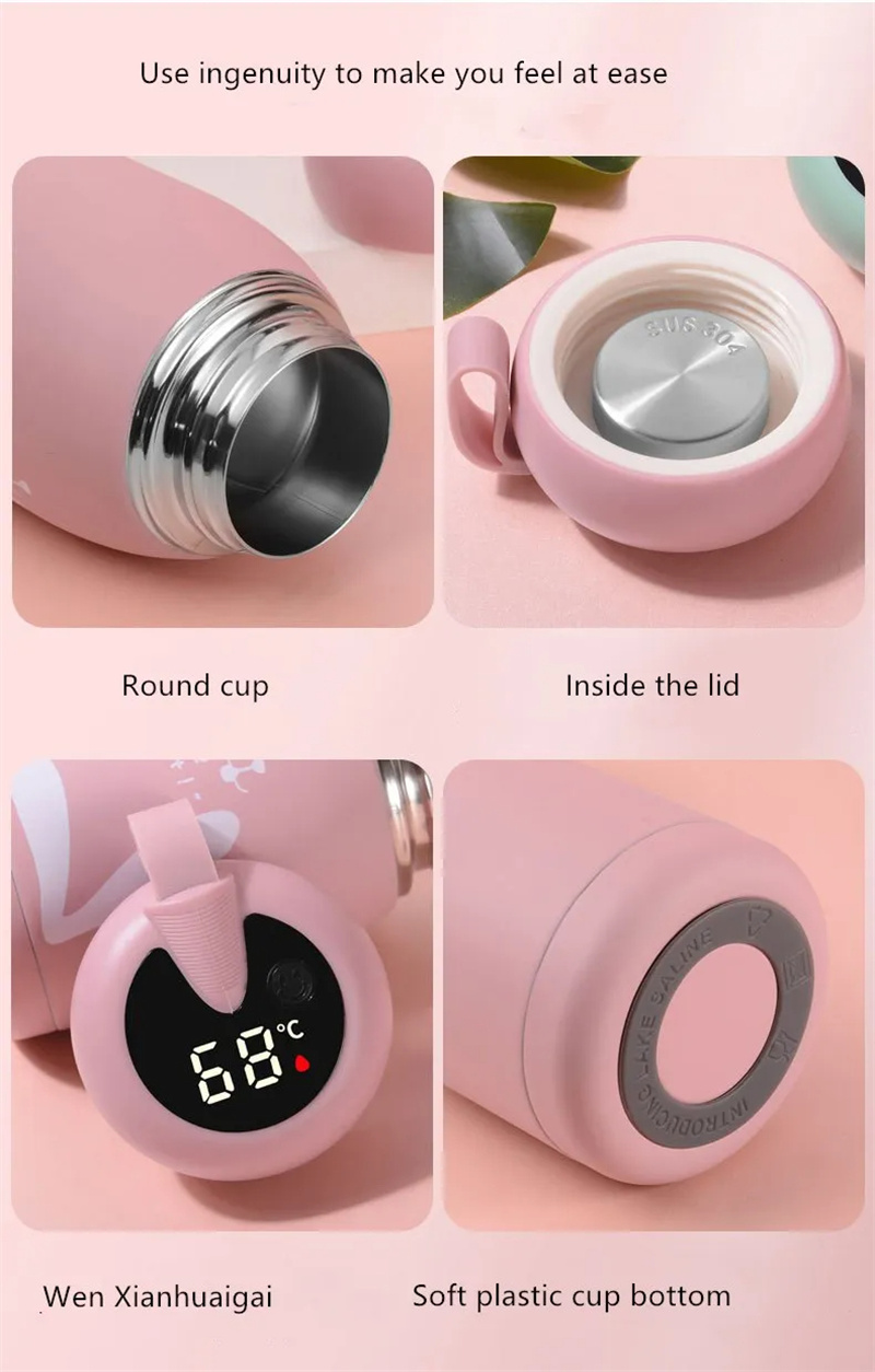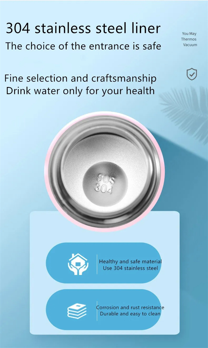 2. Made of 304 stainless steel, double layer vacuum design, safe, BPA free, eco-friendly, odorless, easy to clean. It can keep water hot or cold for 6 hours.