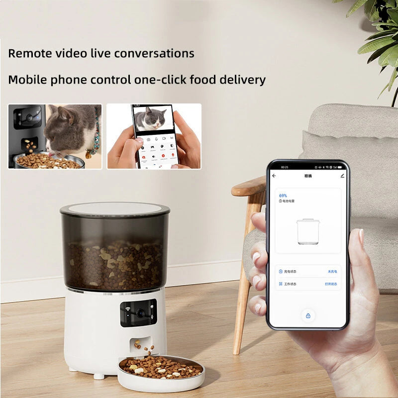 3. Remote Control via Mobile App: Easily schedule feeding, monitor, and dispense food with one-click control.