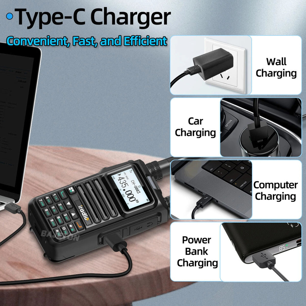 Power Supply: Type-C Charging (multiple options: wall, car, computer, power bank)