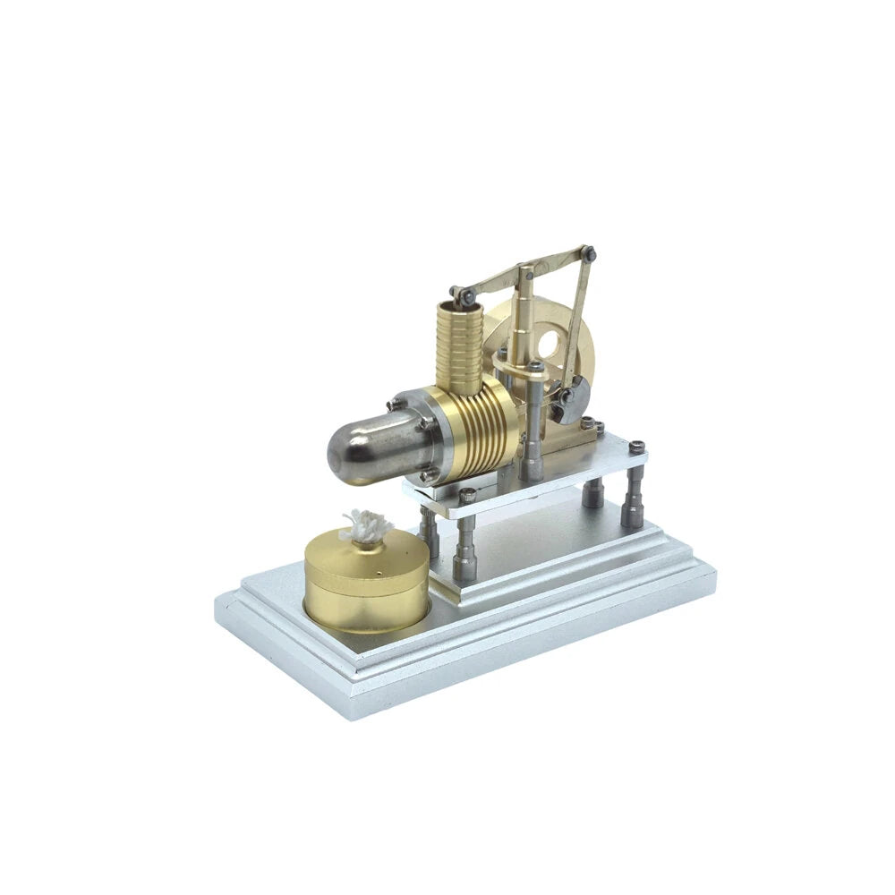 This is a Horizontal Stirling engine model, a very small version model. crafted from brass and stainless steel, is designed with an upgraded base made of aluminum alloy.