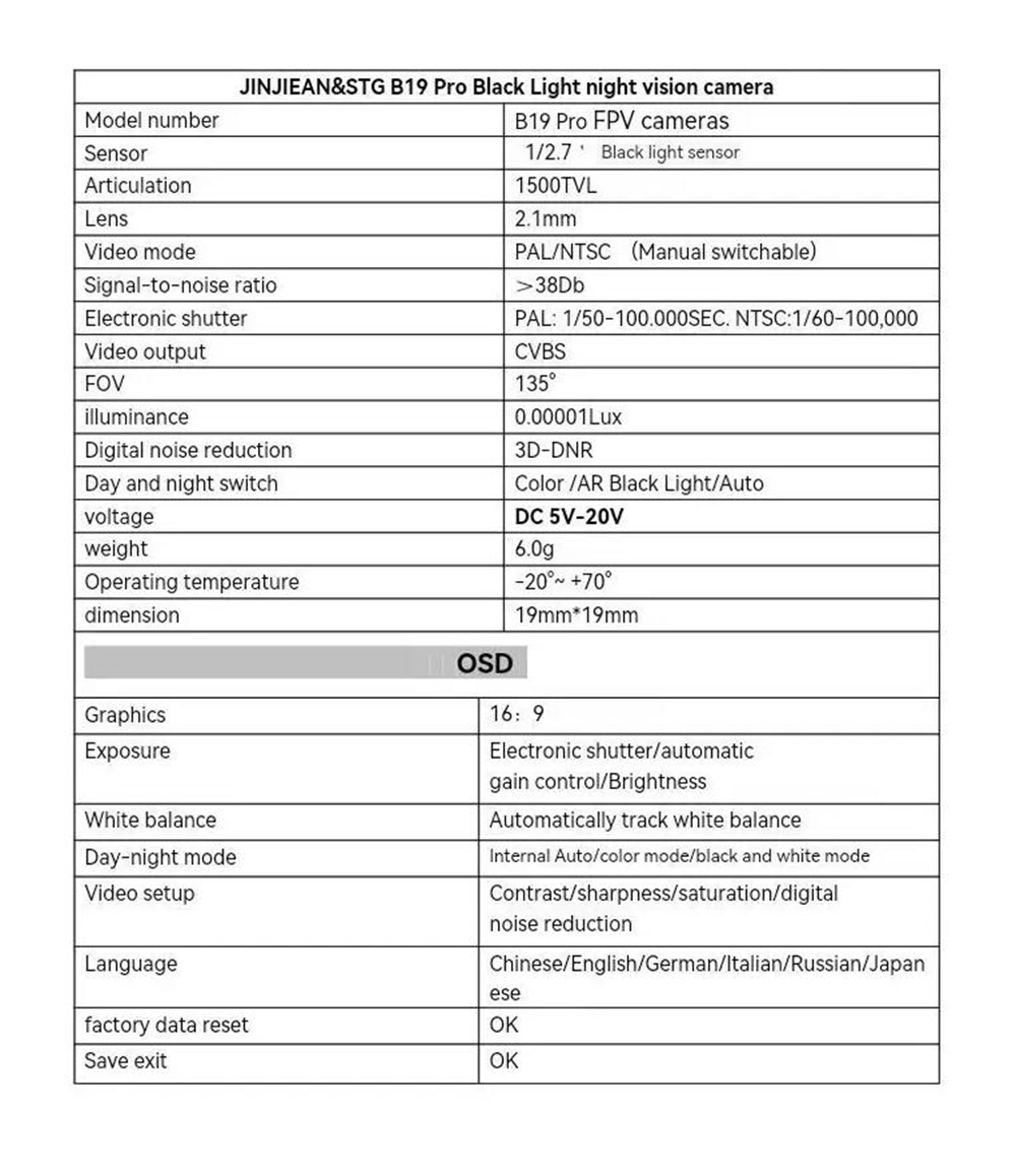 * Versatile connectivity options: Supports PAL and NTSC switchable video modes, compatible with various FPV setups and seamless integration.