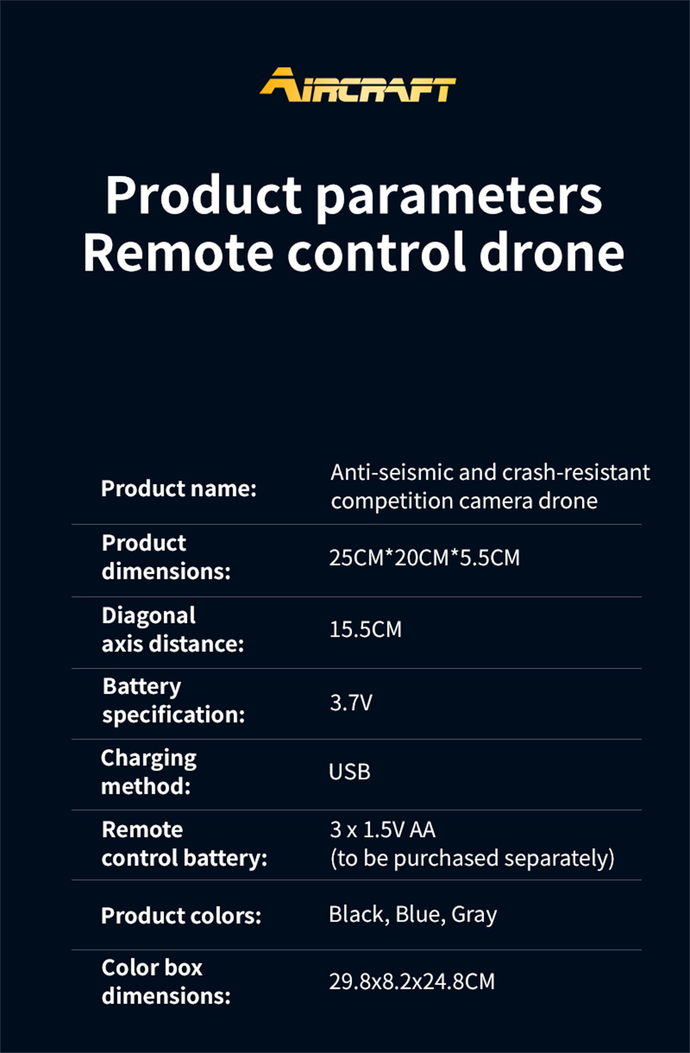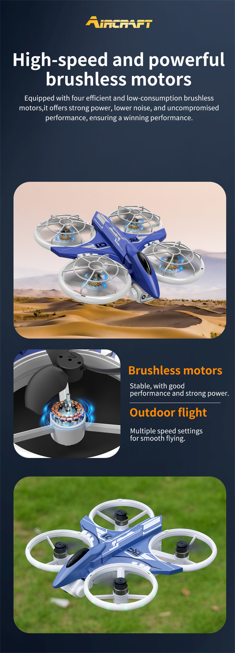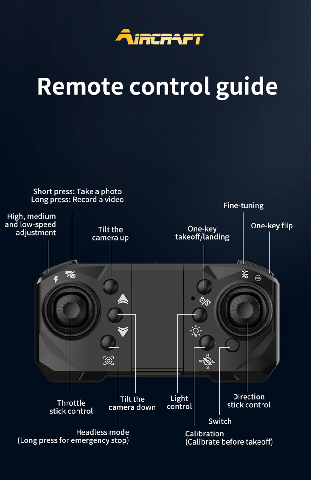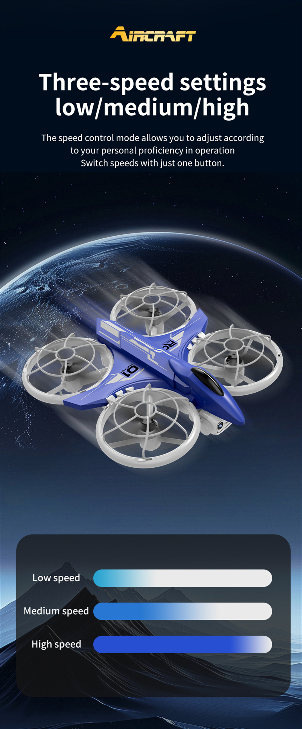 Propeller protection and protective net design, colorful lighting, HD electronically controlled camera, brushless motor, one-button takeoff and landing, headless mode, air pressure altitude control, optical flow positioning, three-speed adjustment, anti-collision and drop resistance, gyroscope calibration, 360° stunt rolls, modular battery, mobile phone app connection control, forward flight, backward flight, ascending flight, descending flight, left and right flight