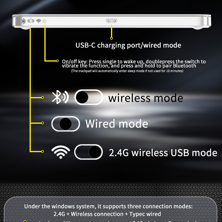 1. Three Connection Modes: bluetooth, 2.4G wireless USB, and USB-C wired for versatile compatibility.