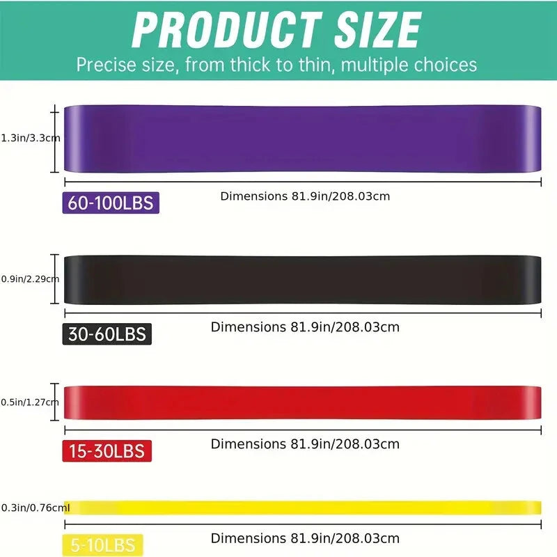 2.Different Color & 4 Pull Up bands levels: Set of 4 pcs Pull up assist bands correspond to different colors, Yellow(5-10 lbs), Red(15-30 lbs), Black(30-60 lbs), Purple (60-100 lbs), 81 inches in length and can be used alone or combine multiple workout bands to increase the challenge.