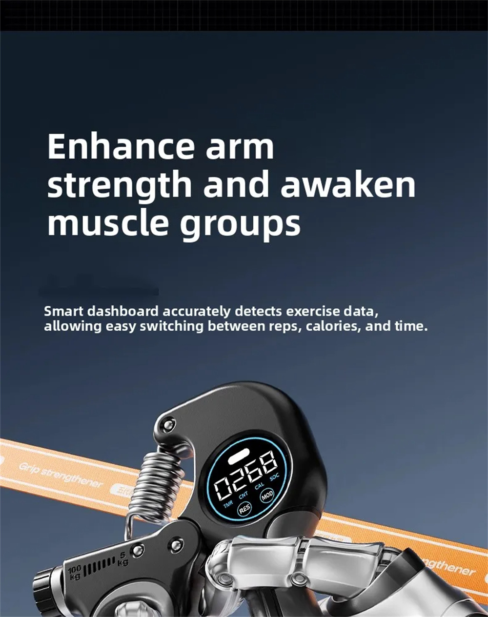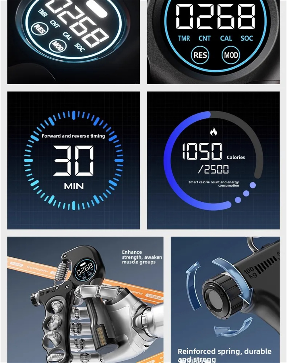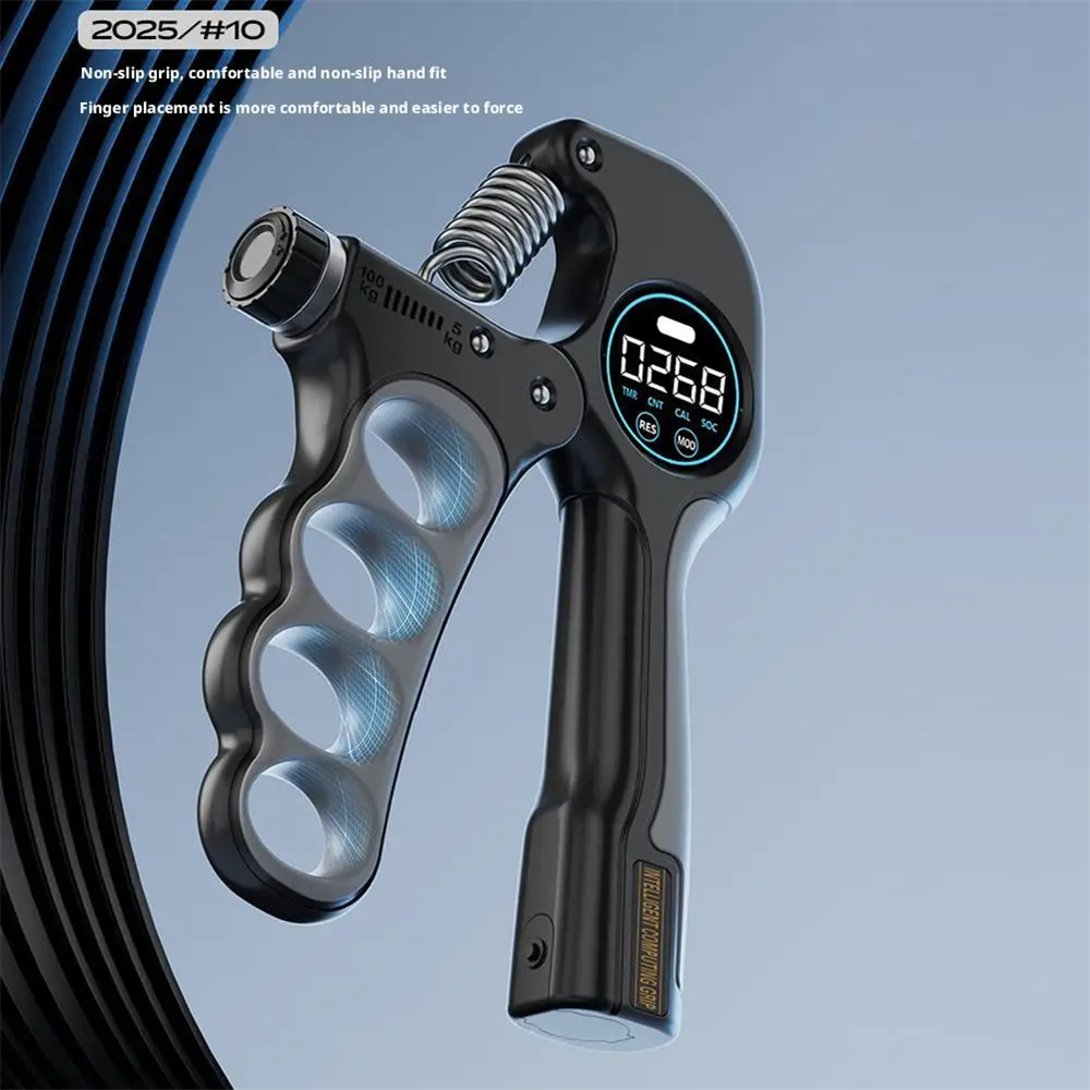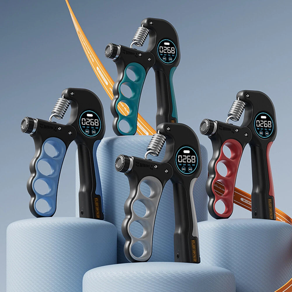 1. This smart grip strengthener features an LED display that shows real-time data like rep count, time, and calories burned, making it easy to track your workout progress.