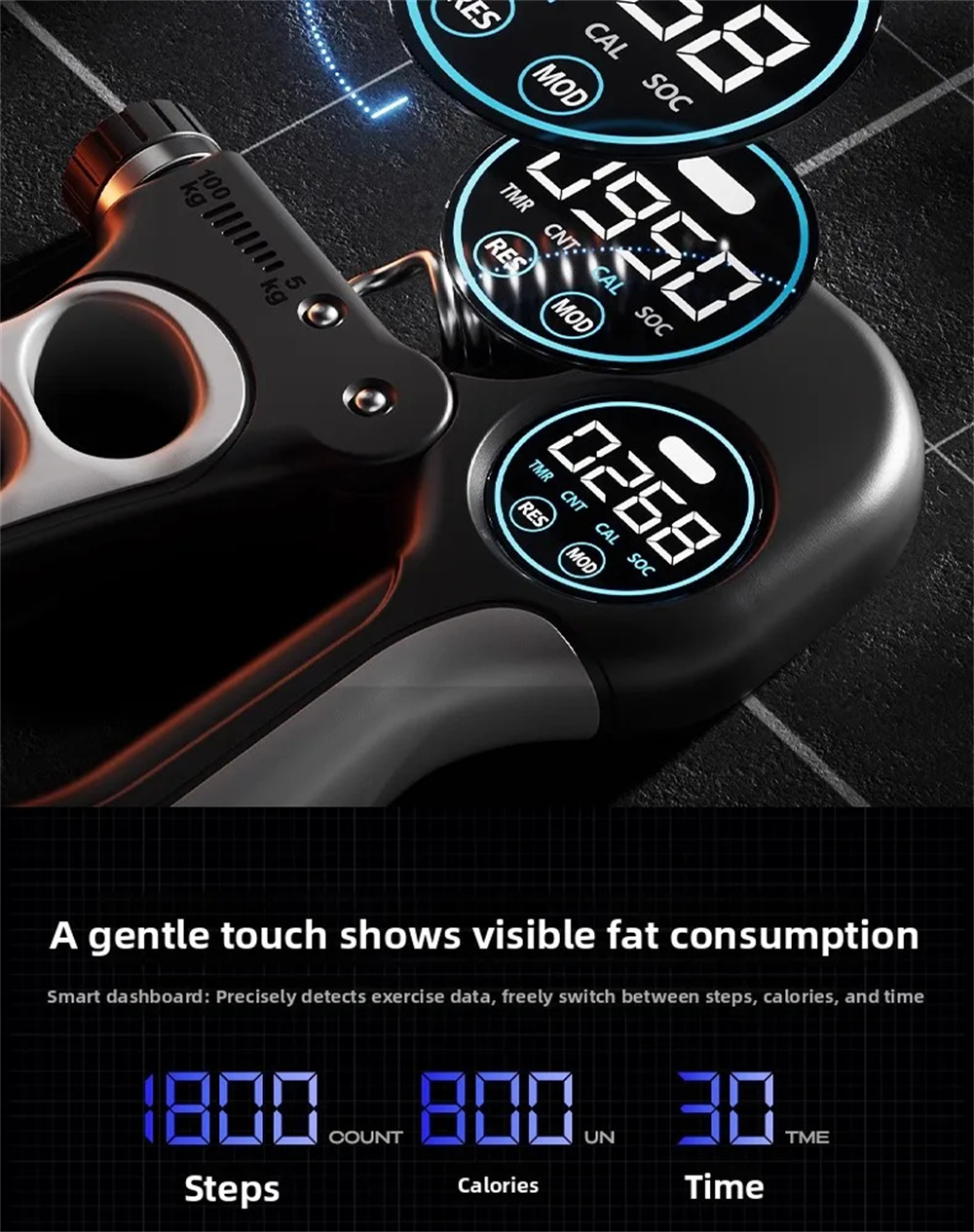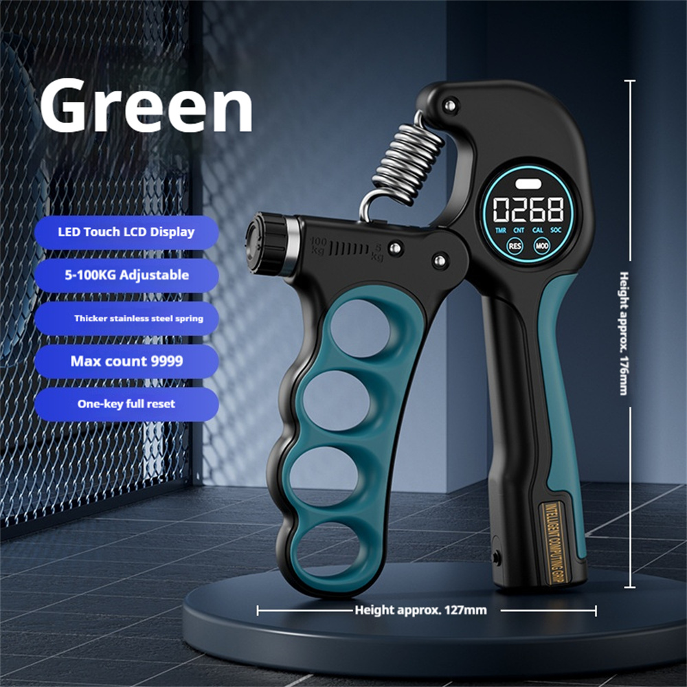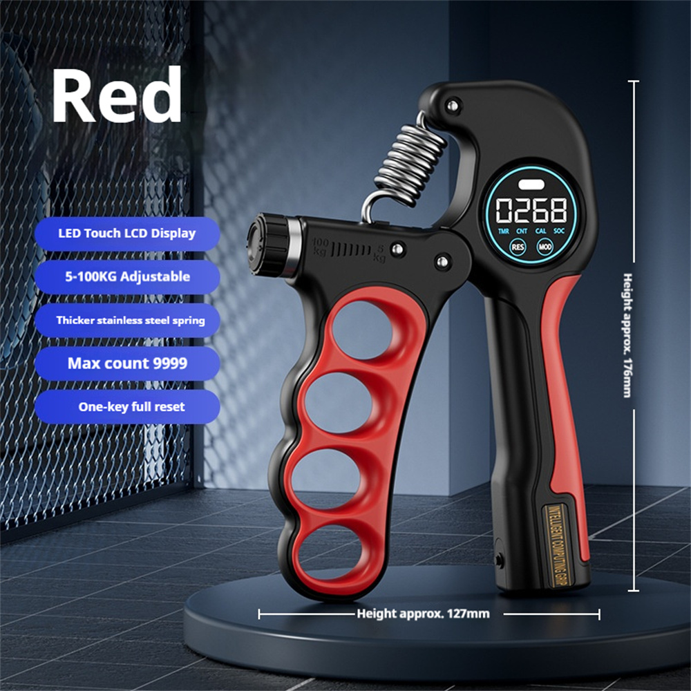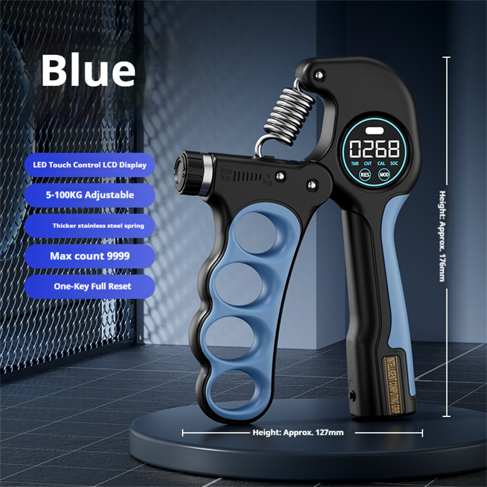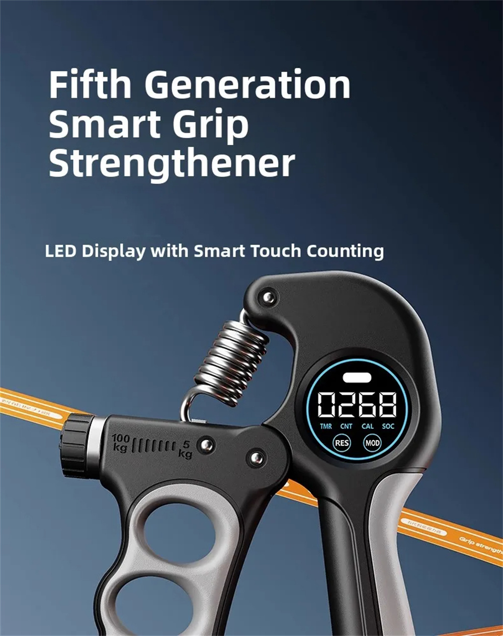 1. This smart grip strengthener features an LED display that shows real-time data like rep count, time, and calories burned, making it easy to track your workout progress.