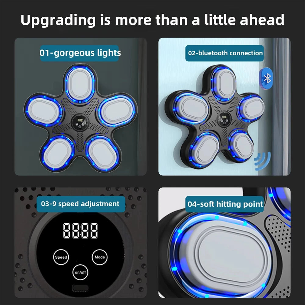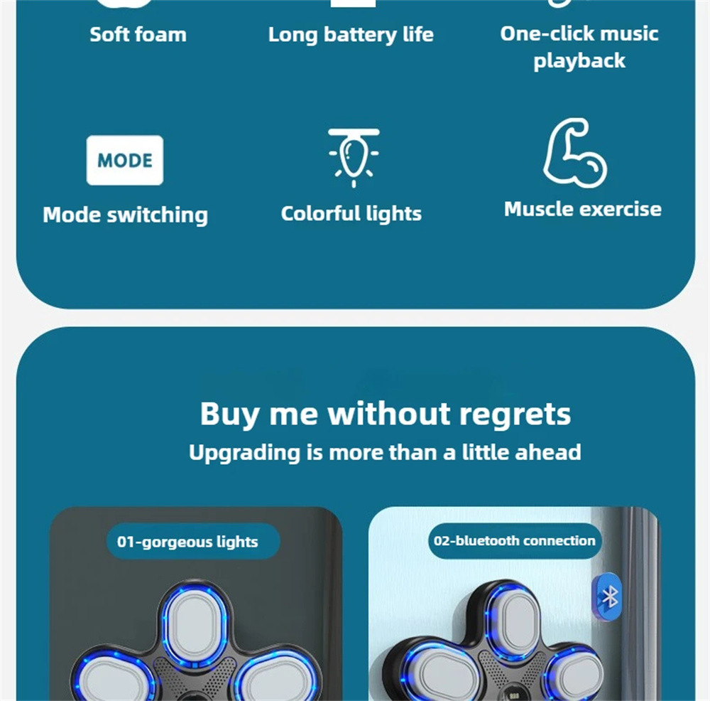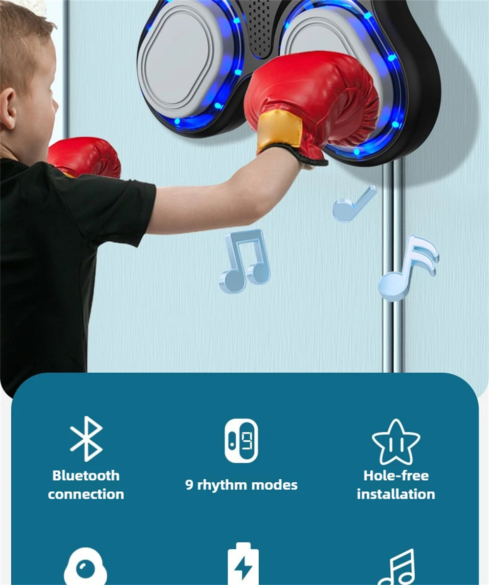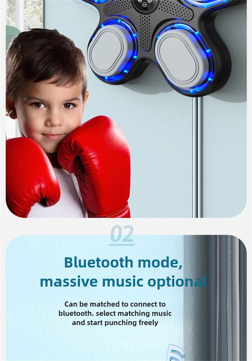 2.Bluetooth-compatible Music Integration: This boxing workout machine can connect seamlessly to your smartphone via Bluetooth-compatible, letting you play your favorite music. Punch along with the rhythm and lights for a fun and challenging workout that keeps you engaged.